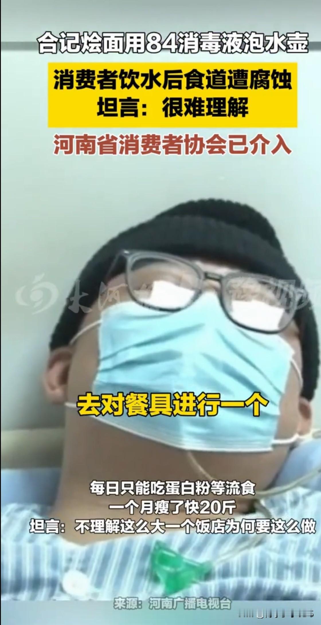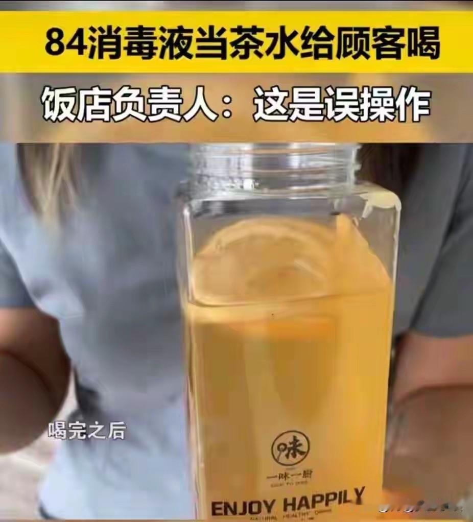 在外头吃顿饭喝口水,谁能想到能遭这么大罪!潍坊的刘女士就碰上了这档子糟心事——在一味一厨餐馆聚餐时,她喝了服务员端来的“茶水”,刚咽下去一口,刺鼻的怪味就直冲鼻腔,食道和胃里瞬间像被火烧一样疼,当场就被送去了医 水壶装84消毒液,顾客喝下后食道被腐蚀,紧急住院,这一幕让无数人心头一紧。看似平凡的餐厅,竟隐藏着如此致命的隐患,也再次敲响了我们对食品安全和生活细节的警钟。 84消毒液,作为一种强力的消毒剂,的确在家庭和公共场所的杀菌消毒中发挥着重要作用。然而,许多人却误以为它可以用来清洗水果、洗碗,甚至误认为“只要冲洗一下就没事”。事实恰恰相反,84消毒液属于强腐蚀性化学品,含有次氯酸钠等成分,若误入口或接触皮肤,极易引起严重的化学灼伤、食道腐蚀,甚至危及生命。 在这起事件中,餐馆竟然将84消毒液装入水壶,作为饮用水供应,令人震惊。这样的操作不仅违法,更是对消费者生命安全的极大漠视。喝下一口,食道黏膜被腐蚀,疼痛难忍,最终不得不住院接受治疗。幸亏受害者及时就医,否则后果不堪设想。 那么,我们该如何正确使用84消毒液,才能远离危险?首先,绝对不要将84消毒液用于饮用或直接接触人体。它只适用于家庭中消毒硬表面,比如厨房台面、厕所、洗手池等,使用时应按照说明稀释,确保浓度在安全范围内。其次,使用时要佩戴手套,避免皮肤接触,使用后要彻底冲洗干净,确保没有残留。存放方面,要放在儿童接触不到的地方,最好用标识清楚的容器存放,避免误用。 此外,公众也应增强安全意识,不要轻信所谓的“家庭妙用”,尤其是在餐饮行业,更要严格遵守食品安全法规。任何为了节省成本或“便利”而违规操作的行为,背后都隐藏着巨大风险。 这起事件提醒我们,生活中每一个细节都关系到健康和生命。安全无小事,不能让侥幸心理成为悲剧的导火索。我们要从自己做起,了解正确的消毒方式,守护自己和家人的健康。也希望相关部门加强监管,杜绝类似事件再次发生,让每一份餐桌都能成为安全的港湾。。 那么,面对如此危险的“潜规则”,我们又该如何保护自己?答案很简单,也很重要:绝不轻信任何非正规渠道的饮品和食物。在外用餐时,一定要留心餐厅的卫生环境和工作人员的操作规范。不要喝陌生人端来的“茶水”或“饮料”,尤其是看起来异常怪异或有异味的。遇到可疑情况,要及时向餐厅管理或相关部门举报。 此外,作为消费者,我们还应学会识别一些基本的安全常识:不要随意接受陌生人的食物或饮品,不在公共场所随意喝水或饮料,遇到异常味道或不适应立即停止饮用并寻求帮助。同时,也要增强自我保护意识,遇到类似事件,要第一时间报警,保护自己和他人的安全。 这起事件再次提醒我们,食品安全不仅仅是监管部门的责任,更是每个人的责任。我们要用科学的态度对待生活中的每一个细节,杜绝侥幸心理。毕竟,健康和生命没有“下一次”,每一次疏忽都可能带来无法挽回的后果。 愿每个人都能在享受美食的同时,保持警惕,用理智和安全守护自己和家人的幸福。让我们共同努力,打造一个安全、健康、温暖的生活环境,不让任何“潜藏的危险”成为伤害我们的阴影。 生命只有一次,健康更是无价。让我们共同努力,远离危险,从点滴做起,用科学守护每一份安全,用正能量传递每一份爱心餐馆奇葩行为 餐馆卫生问题 84消毒液 食品安全