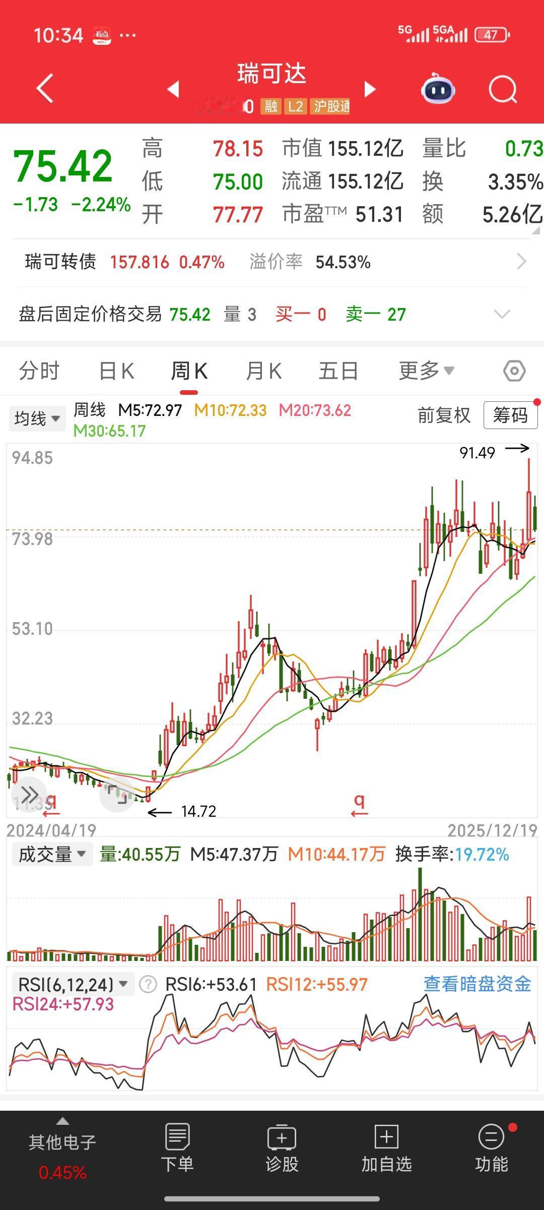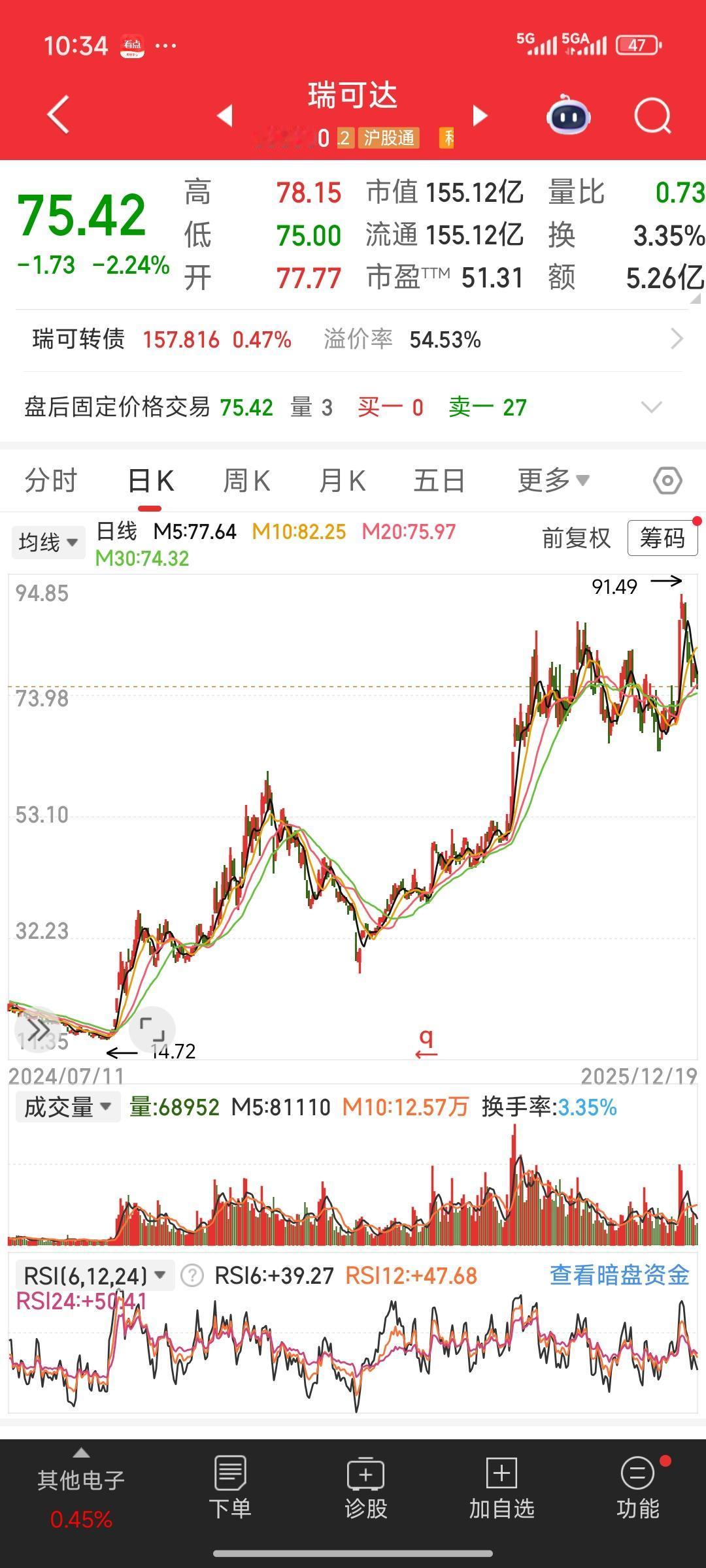 周末复盘瑞可达这只大牛股。2025年8月1日,它放量涨停20%,涨停之后便一直在涨停价位上方进行窄幅波动,持续了将近4个月。到2025年12月8号,它突然再次放量涨停20%,突破了4个多月的调整平台。随后两天,它一直微微拉出小十字星。 这种情况比较符合我的模式,我喜欢做放量突破平台的股票。而且经过持续两天的调整,感觉是个介入机会。可要是买入,结果却会迎来绵绵下跌,最终套牢。那么,到底怎样的放量平台才是真正的突破平台呢? 如果把这只股票的K线拉回到周线级别,或者拉长观察时间,会发现它从2024年9月27号,从14、15块启动,实际上涨幅已经非常巨大,将近有5 - 6倍。一年之内有5 - 6倍的涨幅,主力早已获利丰厚。所以这种高位平台的突破,我觉得诱多的可能性比较大。这种放量突破平台大涨的情况,更多是吸引眼球,以便主力完成最后的出货。 后期走势我们继续观察,看看这个判断是否正确。各位股友,你们都是怎么买入股票的呢?