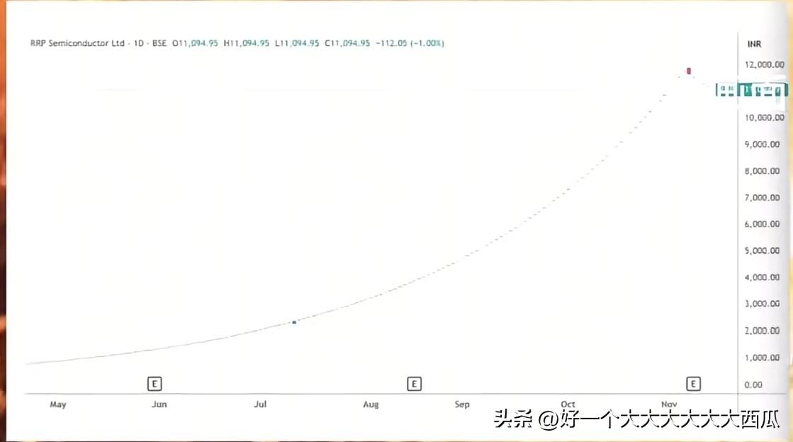 印度真是个神奇的国度, 印度股市诞生了一支人类史上最大妖股, 这支股票在20个月内暴涨550倍, 更是创下了连续149个涨停的世界纪录。 但是令人意想不到的事情, 这支半导体概念股RRP公司仅2名员工, 而且2025年最新季度营收为负数, 仅仅是因为与半导体有一定的关联就成为疯涨的契机, 关键是有行业人士批评说RRP公司与半导体产业关联度极低, 只能说印度股市的泡沫由此可见一斑。