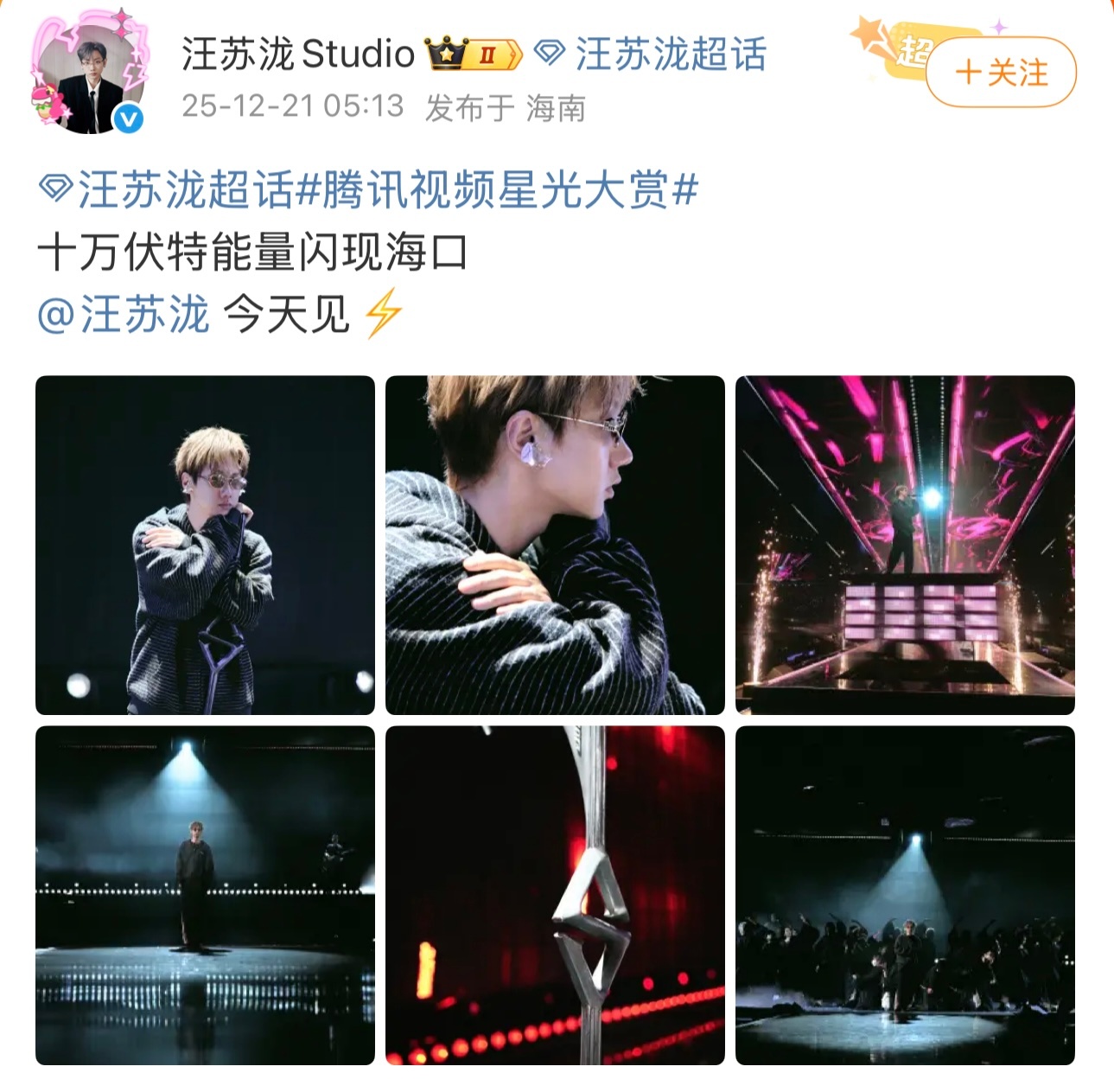 汪苏泷星光大赏赶路连夜彩排顶流大明星的行程是这样的啦,昨晚十一点才结束南宁的演唱会,马不停蹄赶往海口,落地就开始彩排,工作室凌晨五点发送了彩排图依旧状态满分期待哥哥今晚的舞台咯~汪苏泷