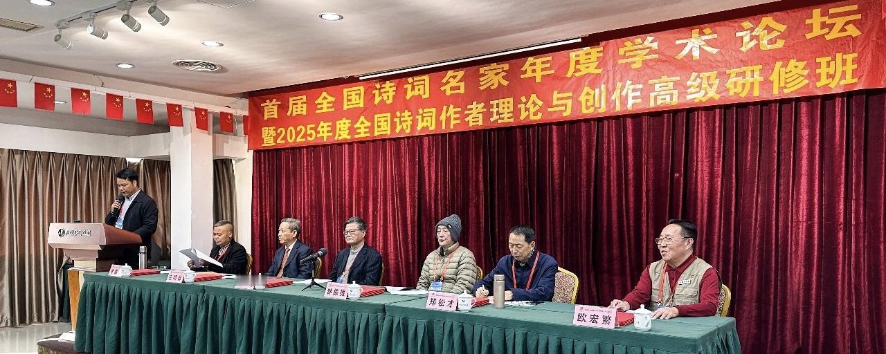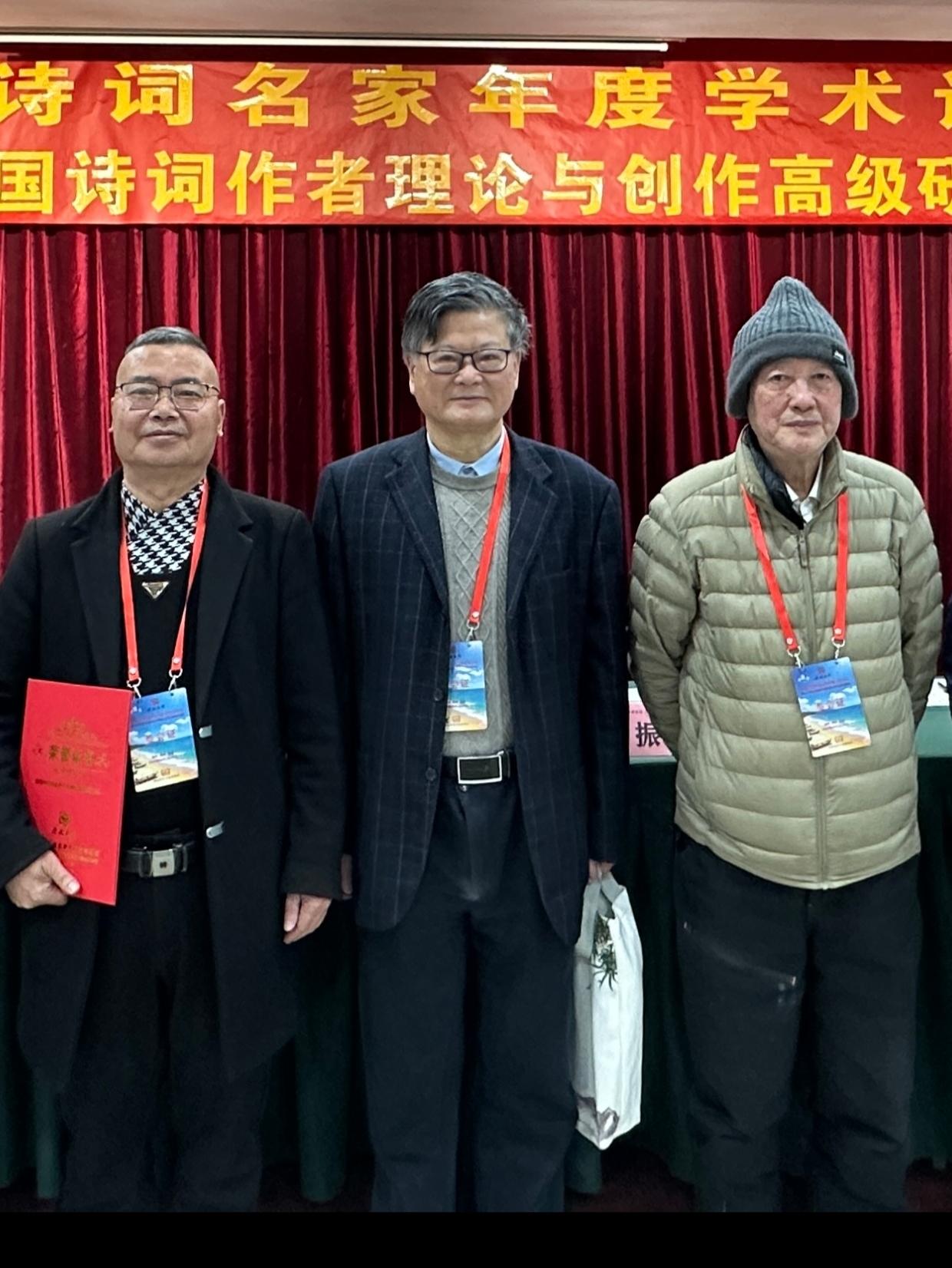 满庭芳•与钟振振胡迎建老师同台 李家宁(中国) 岭海春融,韩潮卷雪,三江鹏翼垂虹。 奖台同立,仰止挹清风。 钟吕声传考据,训诂处、史笔从容。 凝眸际,同光岁月,漫注玉瓷盅。 工夫茶雾暖,鳄川文脉,俱入云峰。 叹驹阴,长怀立雪芳踪。 莫道玄黄寂寂,看星火、已破鸿蒙。 瀛洲外,千帆正举,浩荡赴溟东。 注: 钟掁振 中央电视台"中国诗词大会"总顾问,清华大学特聘教授; 胡迎建 中华诗词学会顾问原副会长,南昌大学特聘教授。 2025、12、21