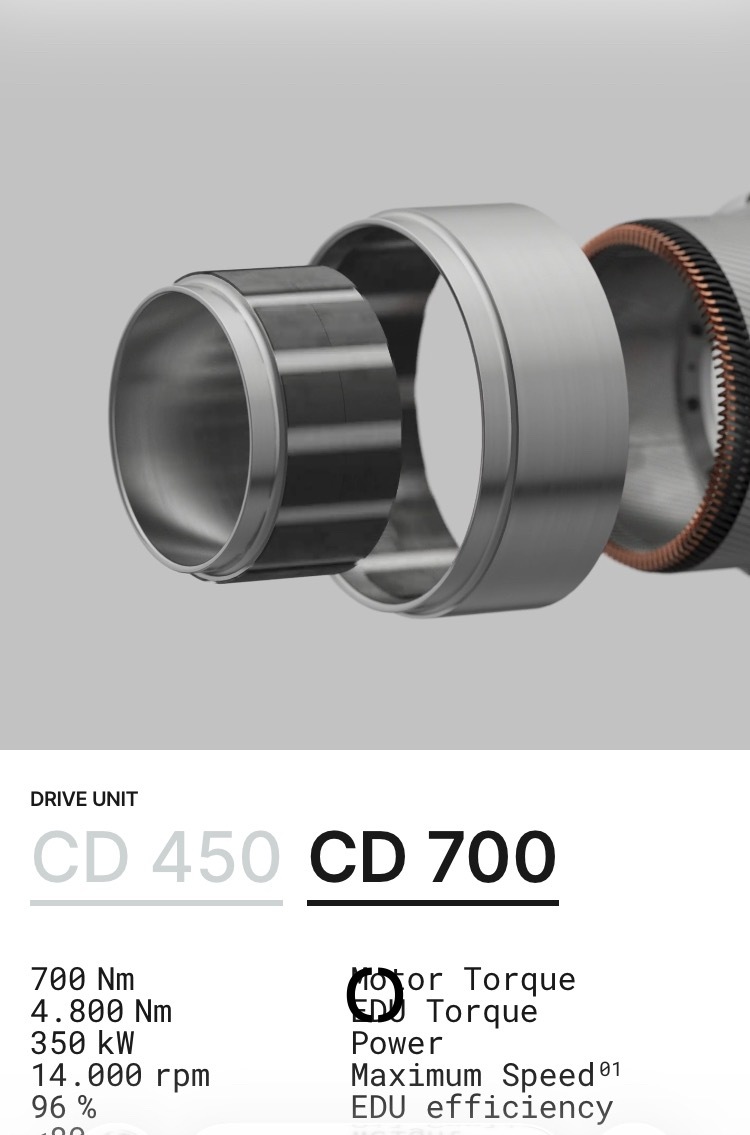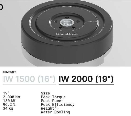 DeepDrive推出了好几款双转子电机技术电机。这种电机因为结构关系,完全取消了铁轭(参考乐道马威电机的闭口槽技术),因此噪声震动极低,实测转矩脉动小于0.5%,运行异常平顺安静。DeepDrive用该技术还做了轮毂电机(IW),该电机可以做到即插即用,在前驱或后驱车型上通过加装两个轮毂电机轻松升级为四驱,而无需重新设计中央传动系统。同时,CD系列驱动电机,因为有两个转子驱动,同轴安装,单电机本身就能实现差速功能甚至扭矩矢量控制!电动车未来的技术空间真的难以想象!大v聊车厂长说电池
