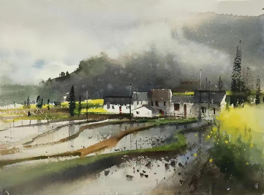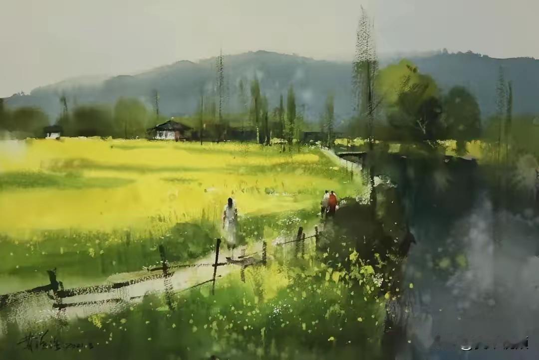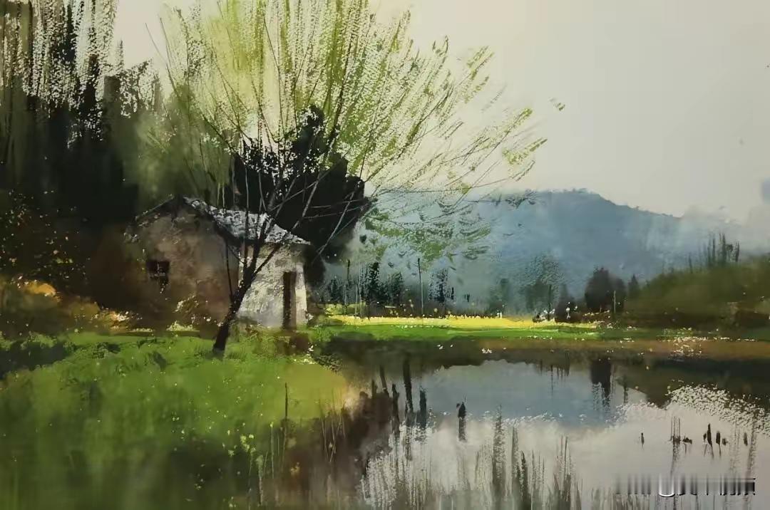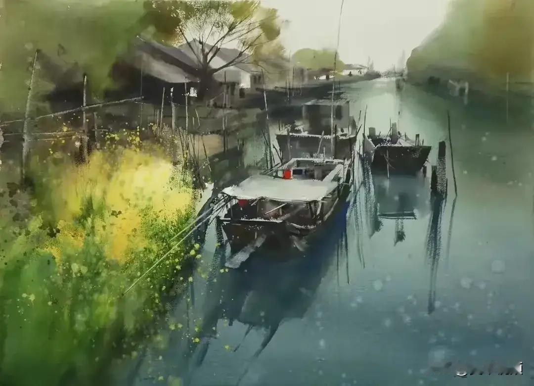 他笔下的故乡江南,那如诗如画的风土人情仿佛被赋予了生命,在画布上静静流淌。