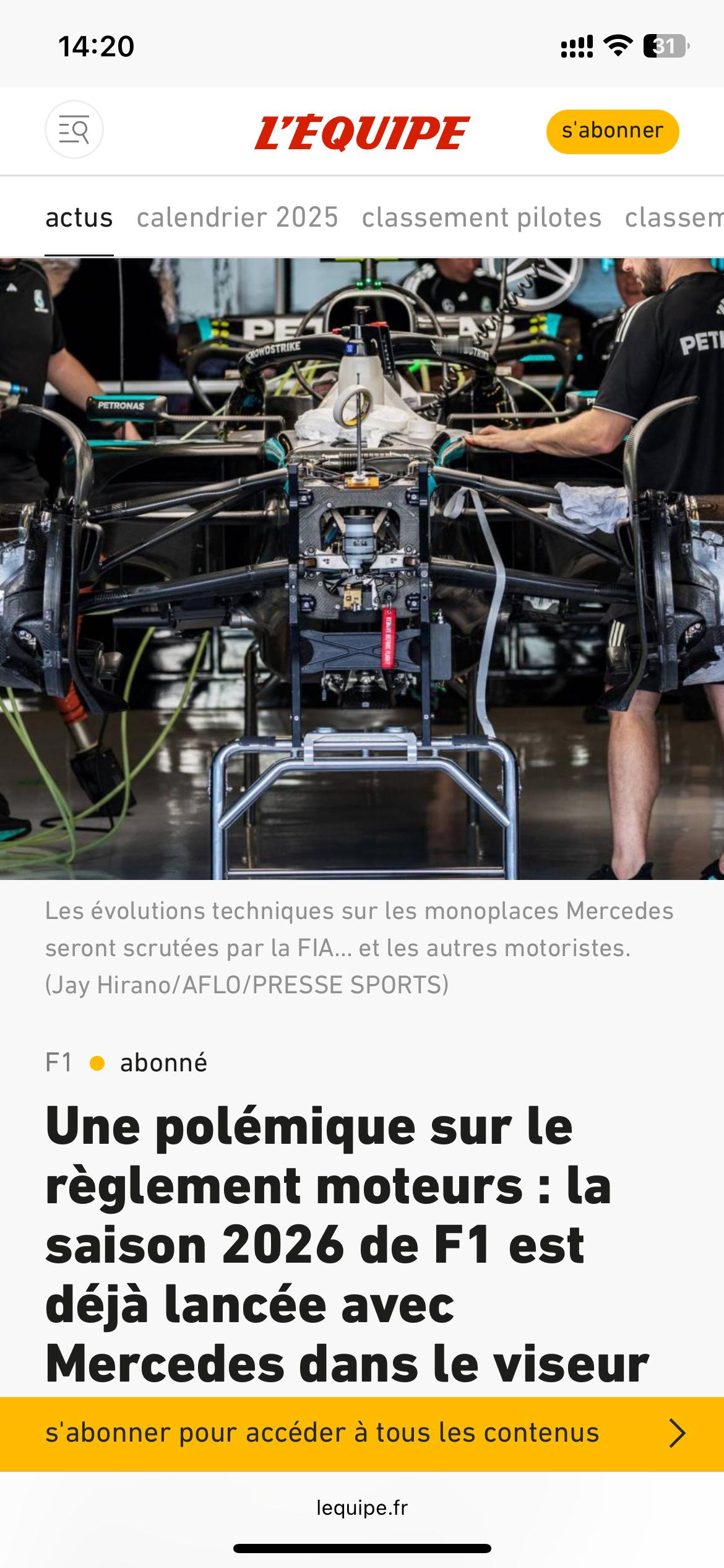 据法国《队报》报道,国际汽联(FIA)将与引擎制造商于周一举行会议,就梅赛德斯和红牛车队所使用的技术解决方案及相关局势展开讨论,并探讨可能的应对措施。即使梅赛德斯和红牛车队与国际汽联达成协议,其他制造商仍可在新赛季开幕大奖赛前对其提出抗议。