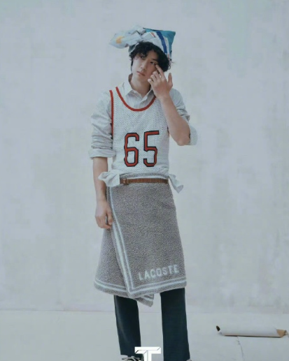 张凌赫冬日青苹果系男大 张凌赫MLB造型,身着MLB绿色棉服,搭配清爽大背头,