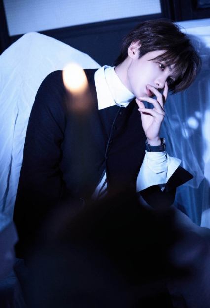 造型帅得离谱,文案更离谱。黑白皮大衣像大boss登场,哥特风又像反派贵公子。短剧式配文一出,粉丝直呼:小贾你太懂了。