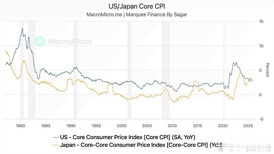 日本通货膨胀率自 1979 年以来首次超过美国通货膨胀率。