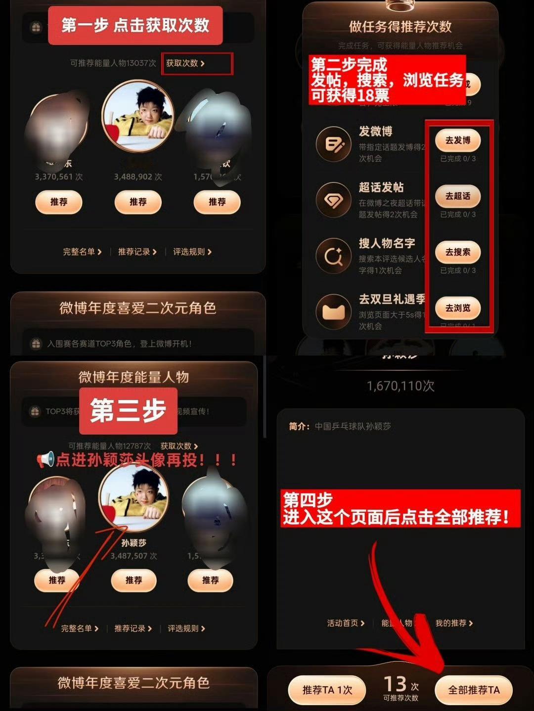 微博年度能量人物 孙颖莎 ⛽大家检查下还有没有助力次数,做任务有没有拿满🎫(所有当日🎫过了00:00作废别忘记投出去❗)点下方蓝色🔗进入助力,点🔗进去助力就是给孙颖莎投票❗重点是助力❗一🐀必助力5️⃣个❗一人助力5个莎莎就得到25票❗1️⃣需要你助力!(👈🏻点进去立即助力)2️⃣需要你助力!(👈🏻点进去立即助力)3️⃣需要你助力!(👈🏻点进去立即助力)4️⃣需要你助力!(👈🏻点进去立即助力)5️⃣需要你助力!(👈🏻点进去立即助力)6️⃣需要你助力!(👈🏻点进去立即助力)7️⃣需要你助力!(👈🏻点进去立即助力)8️⃣需要你助力!(👈🏻点进去立即助力)9️⃣需要你助力!(👈🏻点进去立即助力)1️⃣0️⃣需要你助力!(👈🏻点进去立即助力)——投基础任务票①助力结束后,进入➡️微博之夜 ②下拉页面找到【能量人物】版块③根据〔图一教程〕做任务拿满票④‼️认准孙颖莎页面再投,不要误触投错