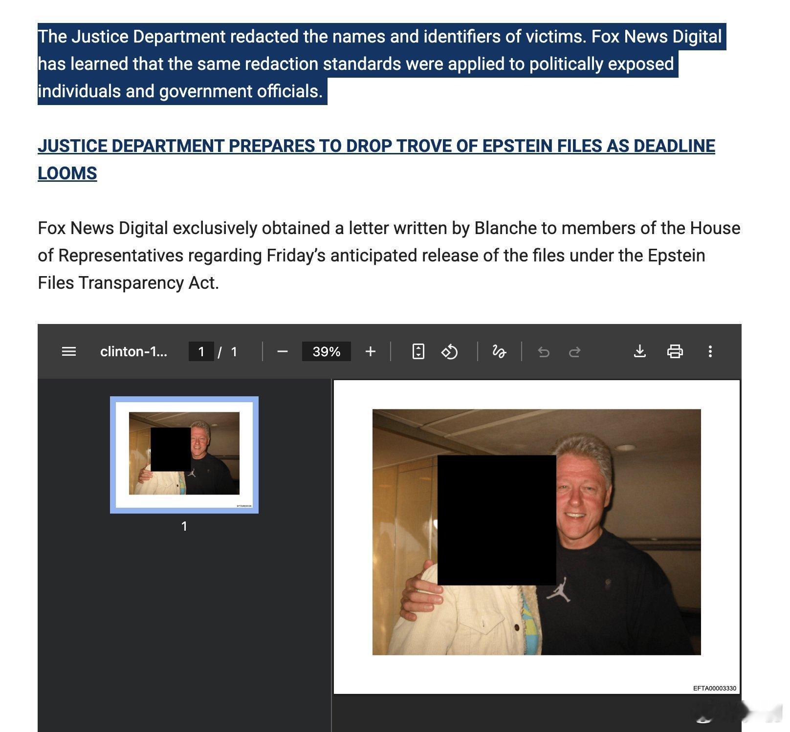 爱泼斯坦案文档公布仍大面积涂黑:福克斯新闻获悉,美国司法部隐去了受害者的姓名和身份信息。同样的隐去标准也适用于政治敏感人物和政府官员,但美国前总统克林顿似乎成为例外。克林顿的丑闻多,不差这一个。克林顿高频出镜特朗普几乎缺席 克林顿替罪羊