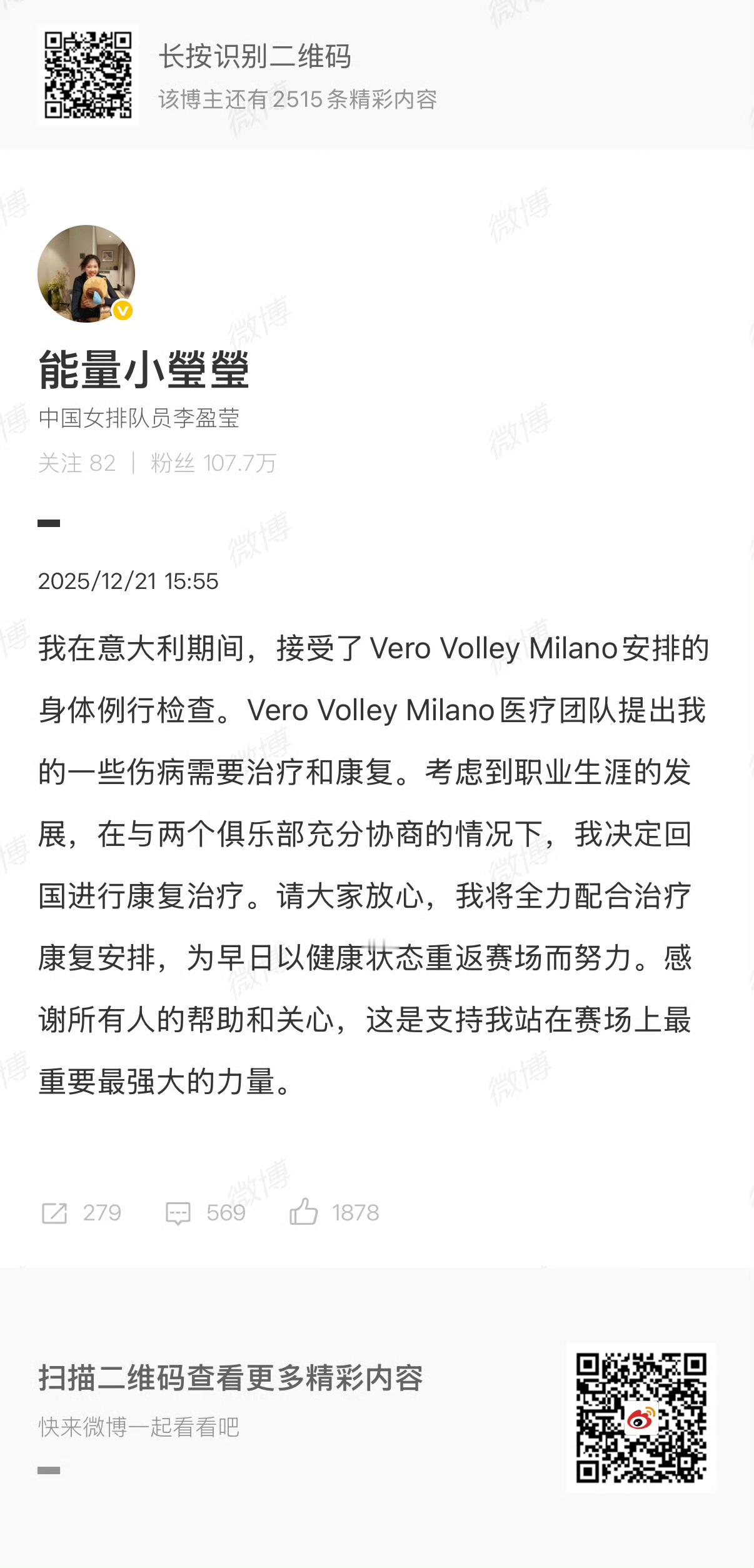 来日方长!先好好修养,治疗和康复伤病有时候短暂离开赛场是为了更好的归来,把最好的祝福送给妹妹💪🏻李盈莹决定回国接受治疗李盈莹回国康复治疗