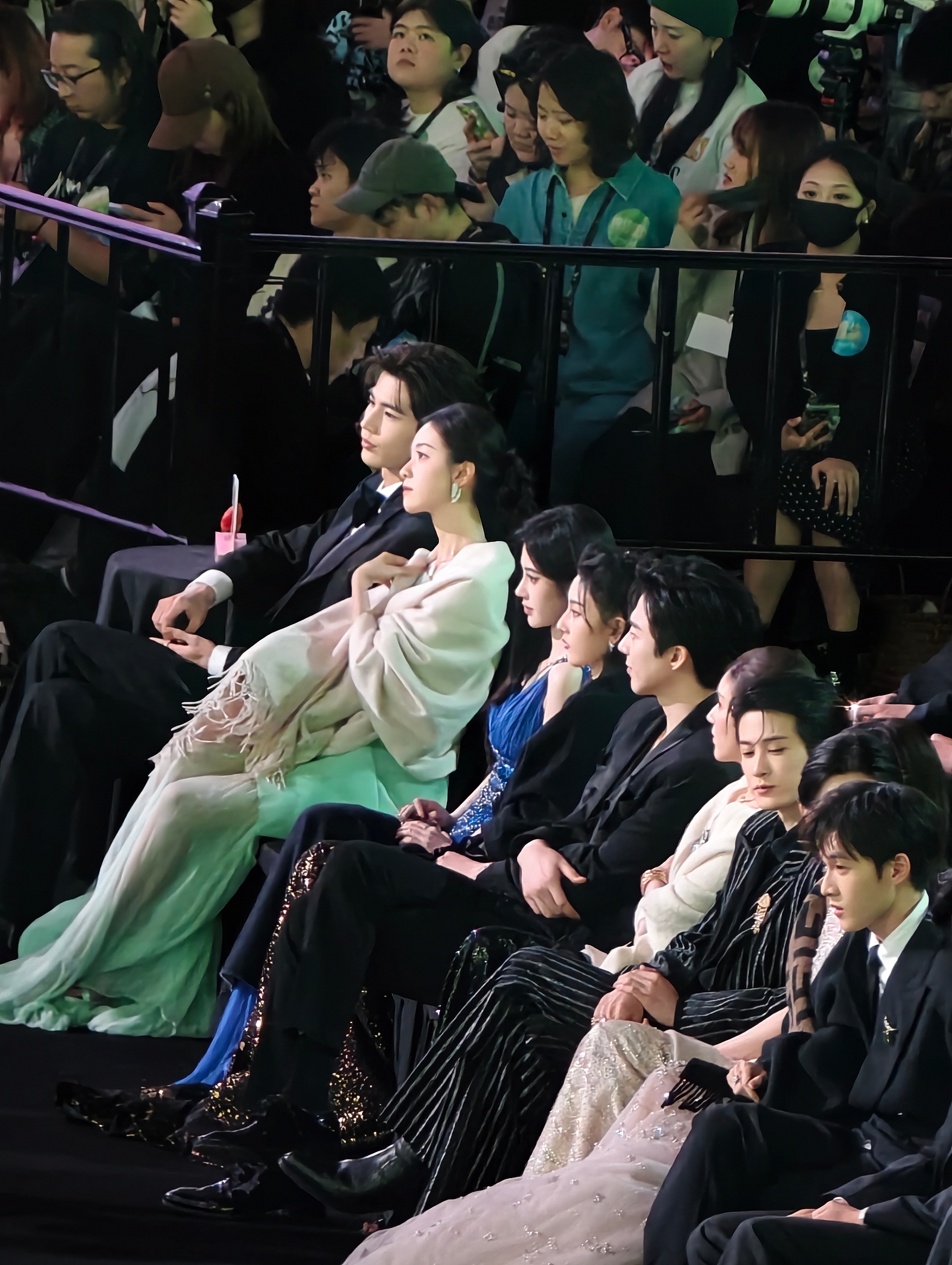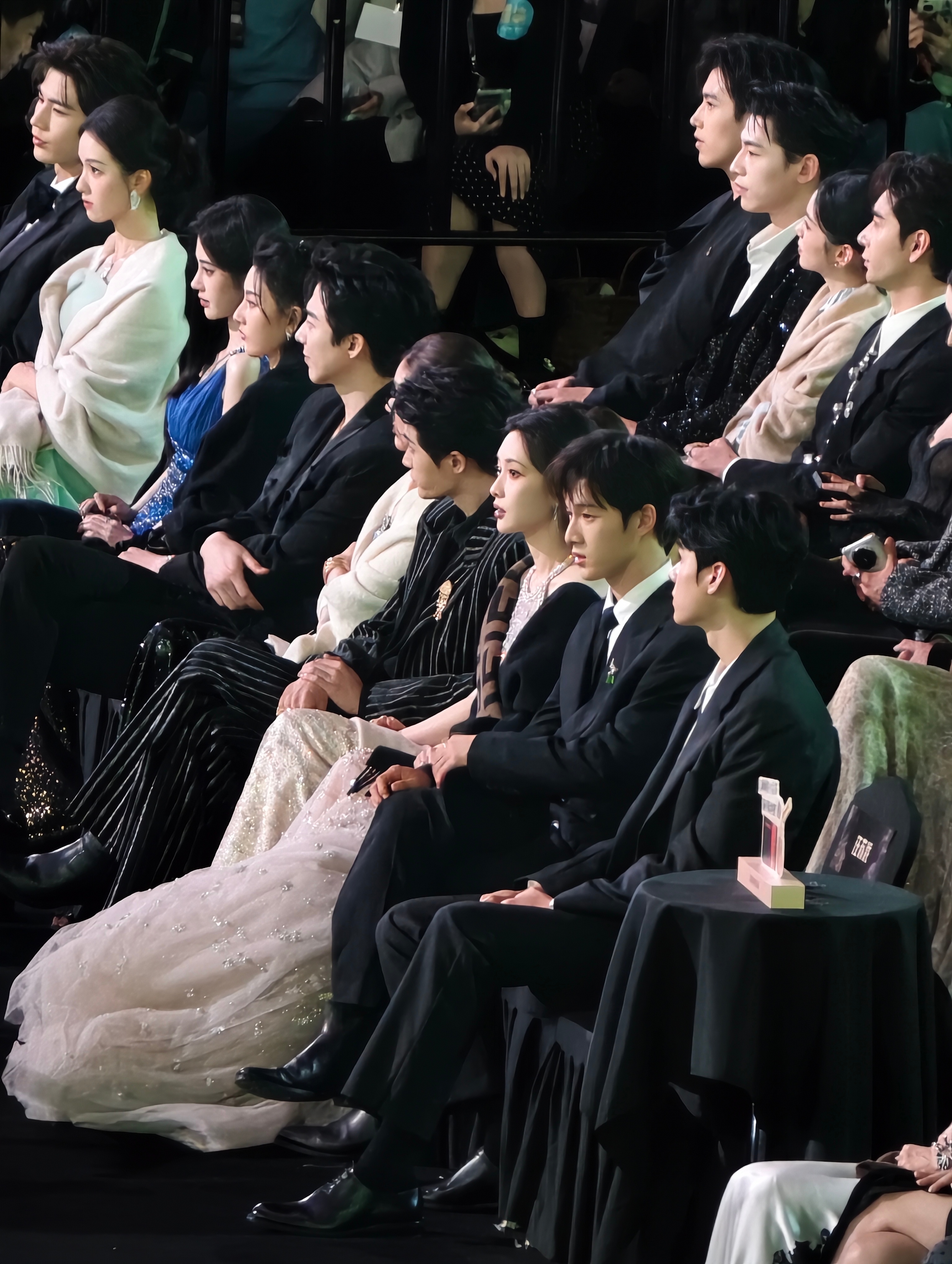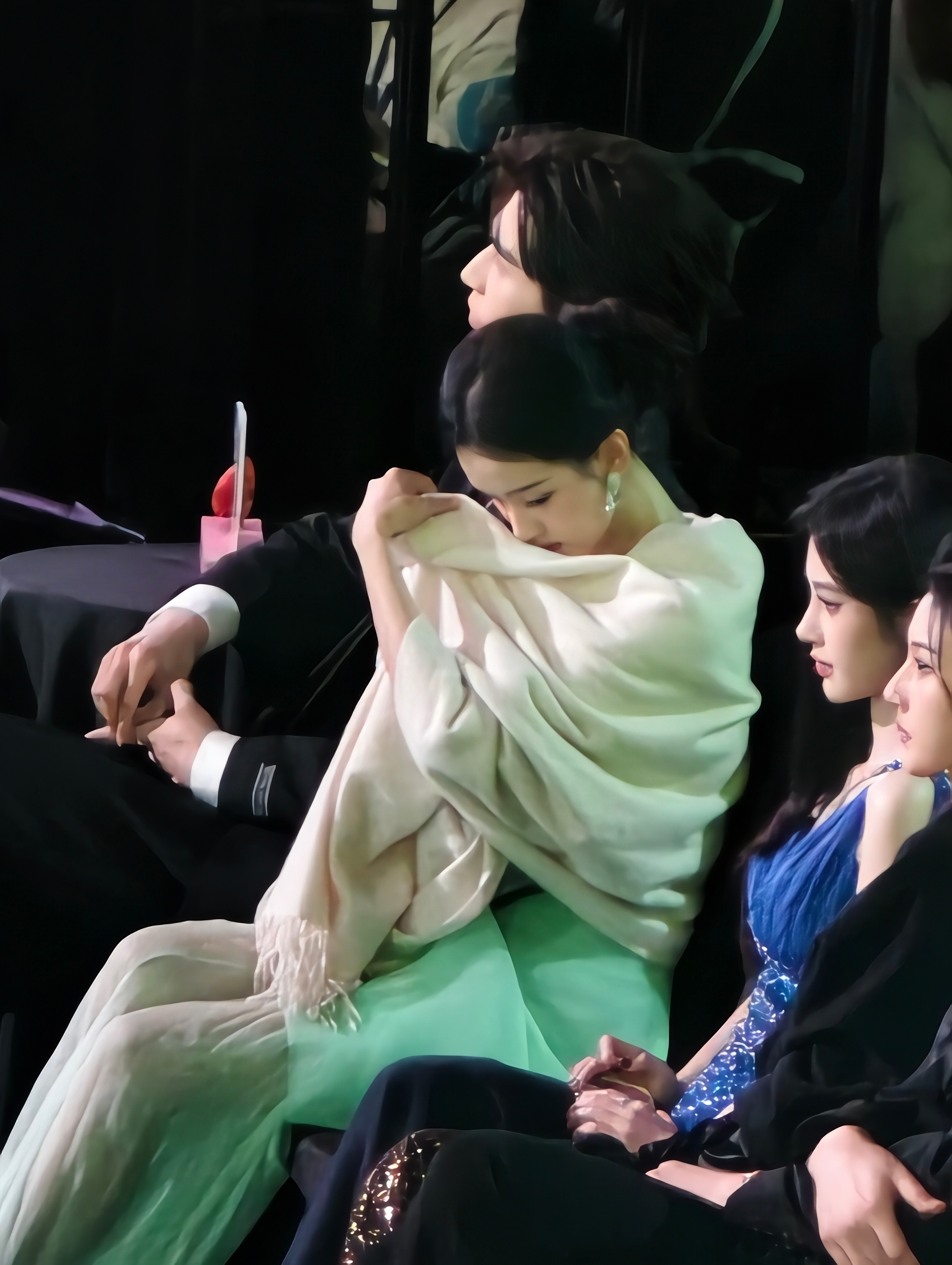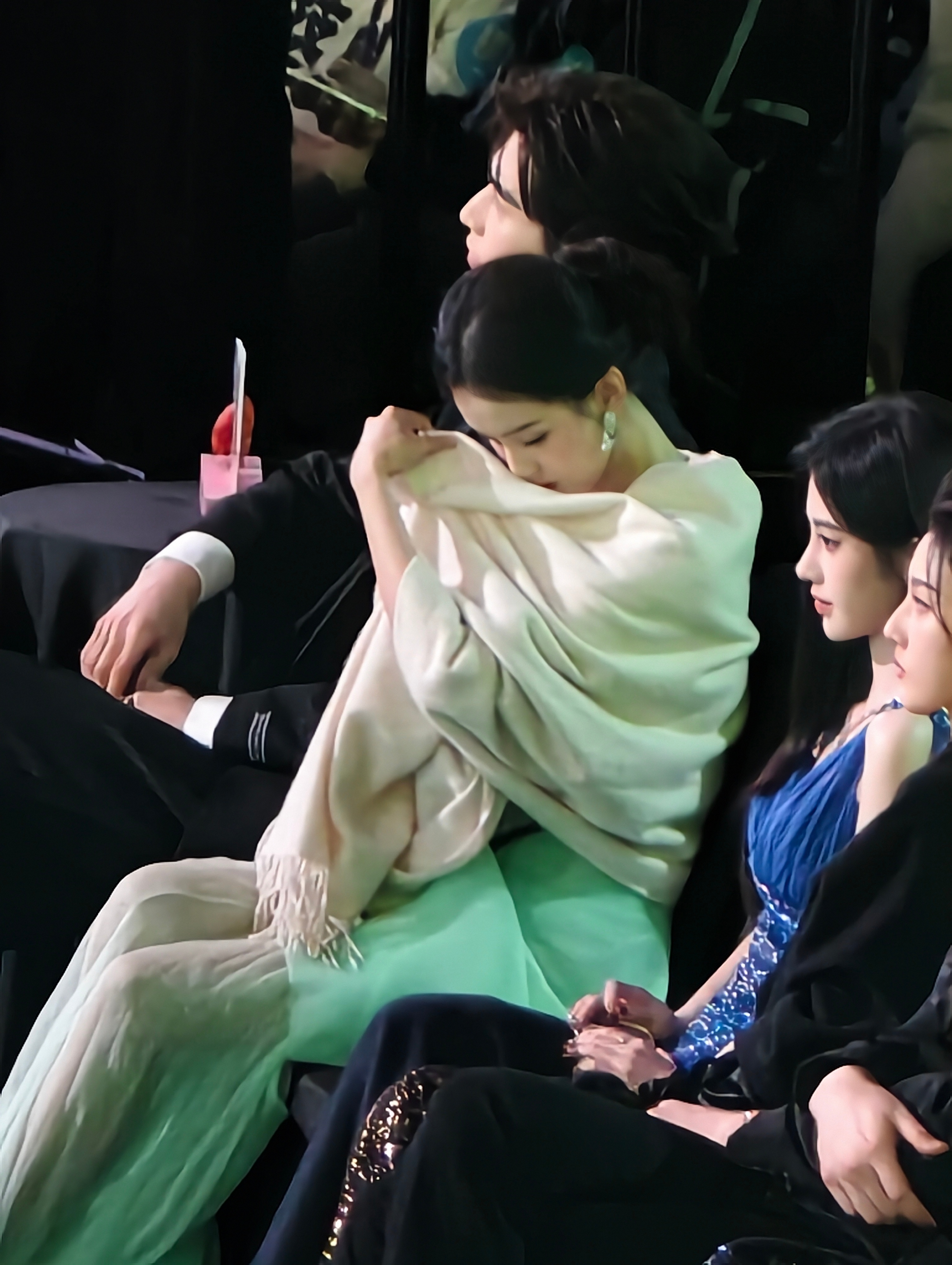 陈都灵保护手机隐私星光大赏内场嘟嘟太美啦!!!经过旁边艺人的提醒后~嘟嘟看手机用披肩挡住啦陈都灵腾讯视频星光大赏kk的星朋友