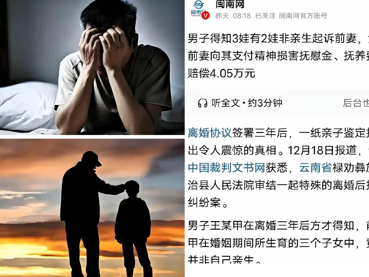 云南,男子的妻子怀了第3胎,他一算日子不对,怀疑不是自己的,两人因此离了婚,离婚3年后,男子为了解开心结 带着大儿子、二儿子去做了亲子鉴定,却发现3个孩子有2个不是亲生,只有婚前生的大儿子是他亲生骨肉,男子非常气愤。 前妻在离婚时故意瞒着二儿子不是亲生,让他在不知情的情况下同意了财产和子女抚养分割条件,一怒之下告上法院,法院判决令人感叹! 2017年,王先生和赵女士带着婚前生下的大儿子,正式登记结婚,一家三口的日子看着温馨和睦。 婚后第二年,二儿子的出生让这个家更显完整,王先生满心欢喜地扛起了养家的责任,以为幸福会一直延续下去。 可这份平静在2022年彻底被打破。赵女士再次怀孕,本是喜事,王先生却越想越不对劲,仔细推算受孕时间,发现根本对不上。 疑心一旦生根就难拔除,他忍不住和妻子对质,两人从此陷入无休止的争吵,原本就不算牢固的夫妻感情彻底破裂。 年底,心力交瘁的两人协议离婚。离婚协议约定,赵女士放弃全部夫妻共同财产,独自抚养二儿子,王先生抚养大儿子,双方互不支付抚养费。 在外人看来,这是一场好聚好散的离婚,可没人知道,这份协议背后藏着一个足以摧毁王先生的秘密。 离婚后的三年里,“孩子到底是不是自己的”这个疑问,像一根刺深深扎在王先生心里,让他寝食难安。 2025年8月,他再也忍不住,带着大儿子和二儿子去做了亲子鉴定。等待结果的那几天,他既期待真相,又害怕面对最坏的结局。 当鉴定报告摆在面前时,王先生还是被狠狠击垮了:二儿子根本不是他亲生的!更让他崩溃的是,那个引发离婚的三胎,也和他没有血缘关系。 也就是说,婚姻存续期间,赵女士生下的两个孩子,都不是他的骨肉,只有婚前的大儿子是他唯一的亲生儿子。 多年的付出和疼爱,原来都喂给了谎言。更让王先生愤怒的是,前妻明明知道二儿子不是他的,却在离婚时刻意隐瞒。 让他在不知情的情况下签下了财产分割和子女抚养协议。这种赤裸裸的欺骗,不仅践踏了夫妻情分,更侵害了他的合法权益。 2025年11月,王先生一纸诉状将赵女士告上法庭,要求讨回公道。很多人都在问,离婚都三年了,他还能翻盘吗?答案是:能!法律从不会纵容欺骗,更不会让无过错方独自承受伤害。 法院审理后明确指出,赵女士的行为已经构成欺诈。受欺诈方有权请求撤销。王先生是在被蒙骗的情况下签订的离婚协议,自然有权要求重新处理相关事宜。 同时,赵女士在婚姻存续期间生下非婚生子女,严重违背了夫妻忠实义务, 这种背叛带来的,不仅是情感上的重创,更是对人格尊严和家庭信任的彻底摧毁。 最终,法院综合考量各种因素,判决赵女士赔偿王先生1.5万元精神损害抚慰金;另外,王先生对二儿子没有法定抚养义务。 之前不知情支付的抚养费应当返还,按照当地每月500元的生活标准,51个月共计2.55万元。两项相加,赵女士需向王先生支付4.05万元。 有人觉得4万多的赔偿太少,不足以弥补王先生受到的伤害。但要知道,这场官司的意义远不止金钱赔偿,它明确了婚姻里的底线:忠诚不是空话,欺骗必然要付出代价。 更提醒所有人,离婚协议的签订必须建立在真实自愿的基础上,任何隐瞒和欺诈,都可能被法律撤销。 婚姻的核心是信任与坦诚,一旦掺杂了谎言和背叛,再看似美满的关系也会分崩离析。 赵女士以为隐瞒真相就能全身而退,却没想到纸终究包不住火,最终不仅要承担法律责任,还要背负道德谴责。 而王先生的经历也告诉我们,面对婚姻中的不公和欺骗,一味隐忍只会让自己更受伤,勇敢拿起法律武器,才能维护自己的合法权益。 同时也给所有夫妻敲响警钟:婚姻不是儿戏,忠诚是不可逾越的底线,任何时候都别用谎言去透支别人的信任。 如果是你遇到这种情况,会选择隐忍还是果断维权?你觉得这个判决合理吗?