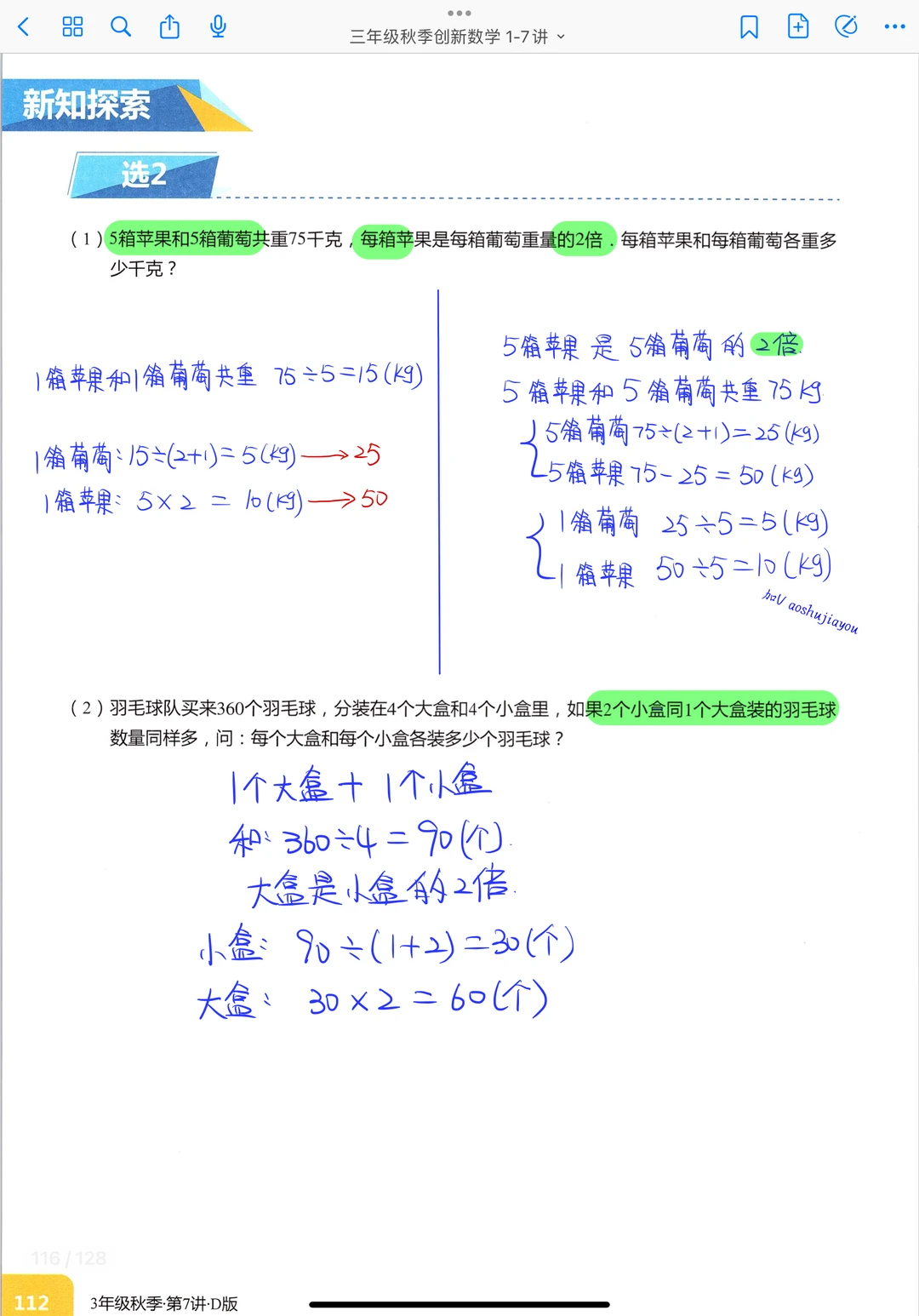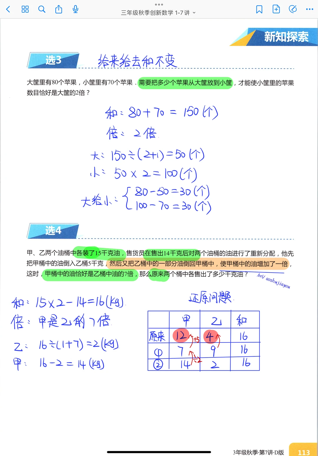 《和倍问题》三年级秋季创新班奥数课堂笔记