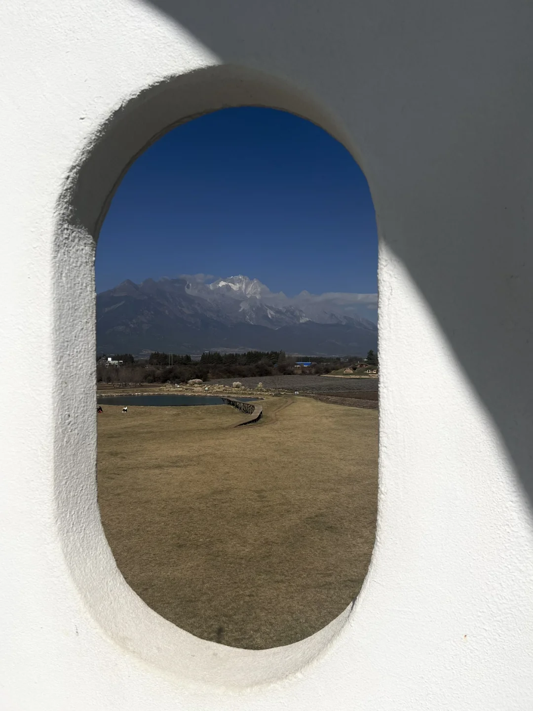 可以倒影出后面的玉龙雪山
