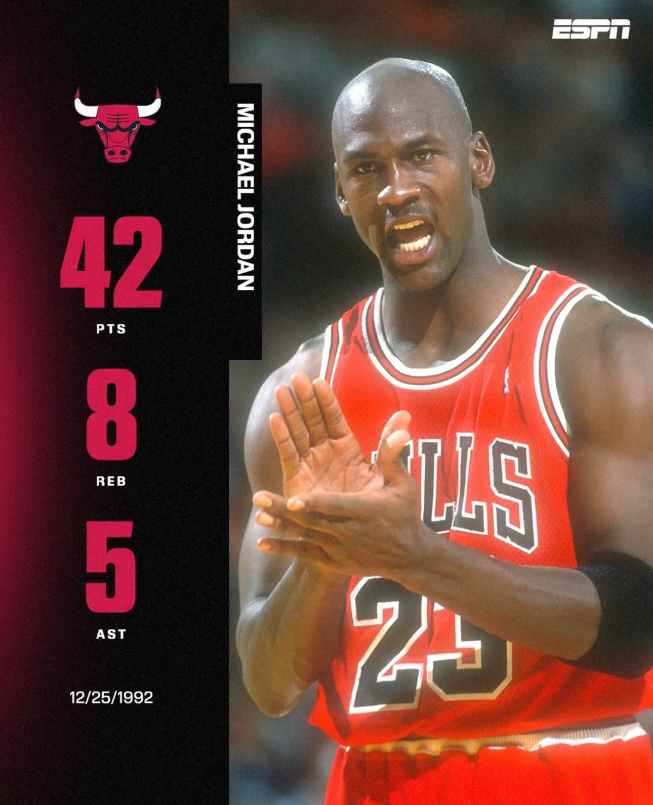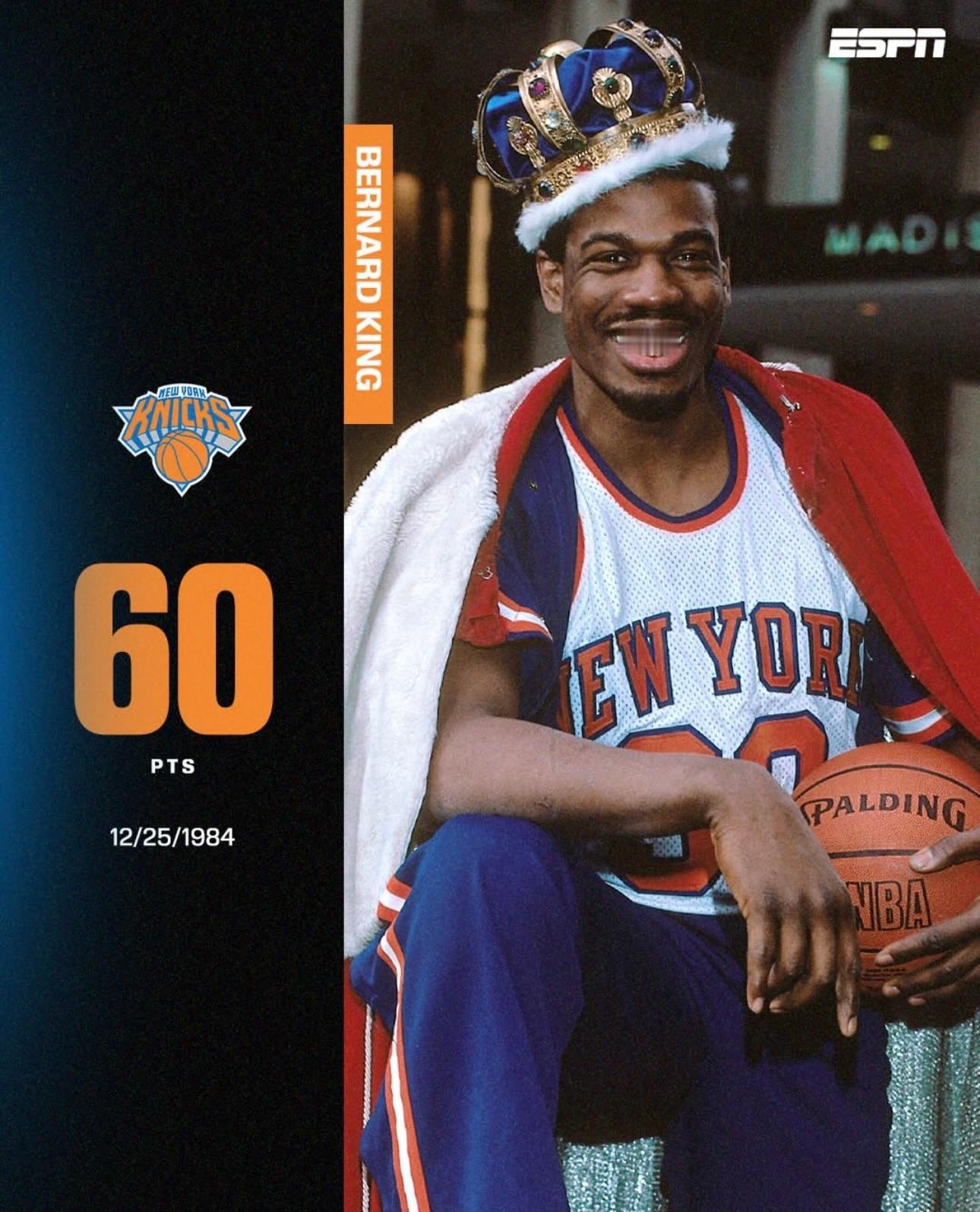 往届NBA圣诞大战的最佳球员表现,“纽约之王”伯纳德·金创下单场得分最高记录!Images via espn