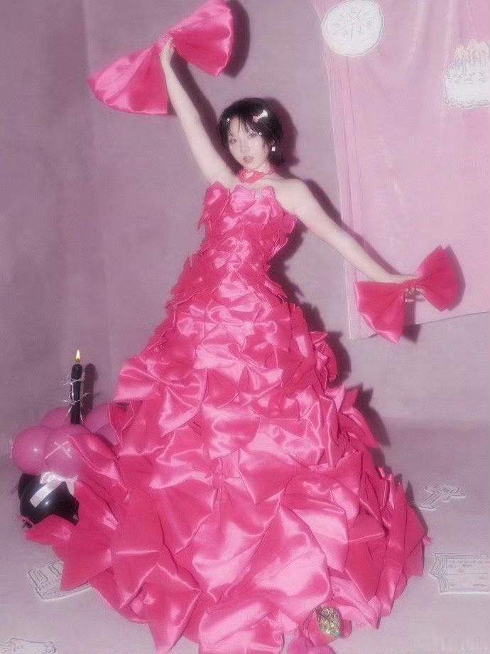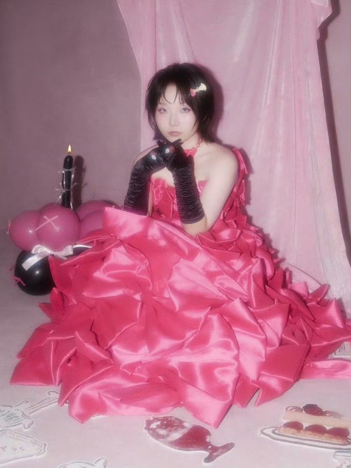 李嘉琦cos草莓小蛋糕玫红蝴蝶结礼服如奶油层层堆叠,缀上黑色丝绒手套的反差优雅。这枚“草莓小蛋糕”甜中带飒,看一眼就让人heart软软