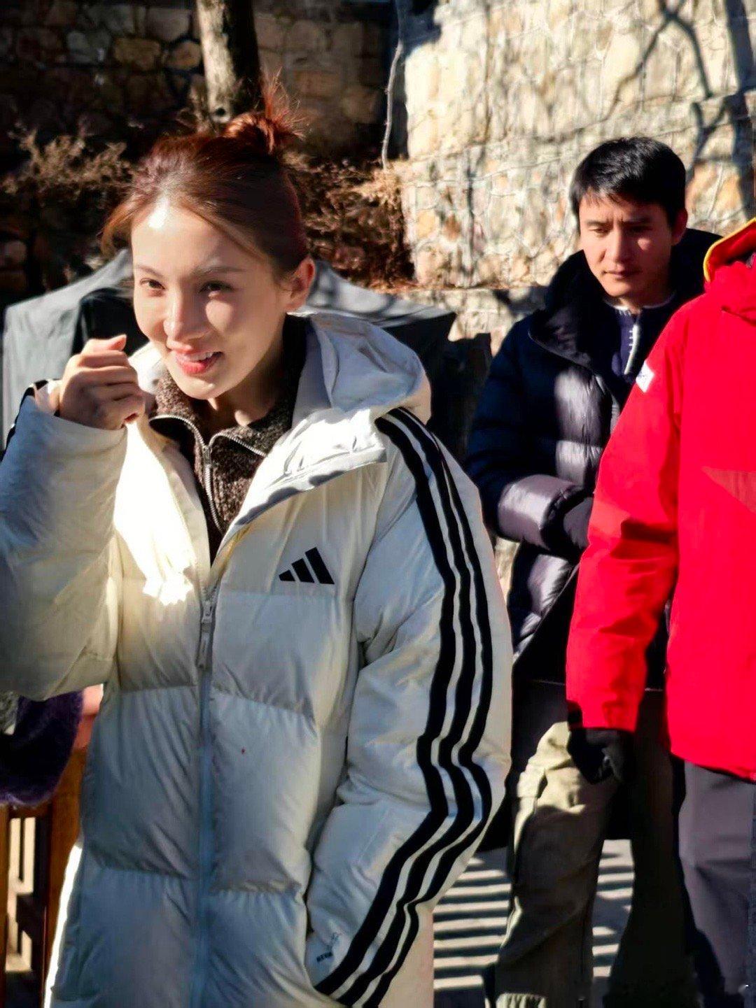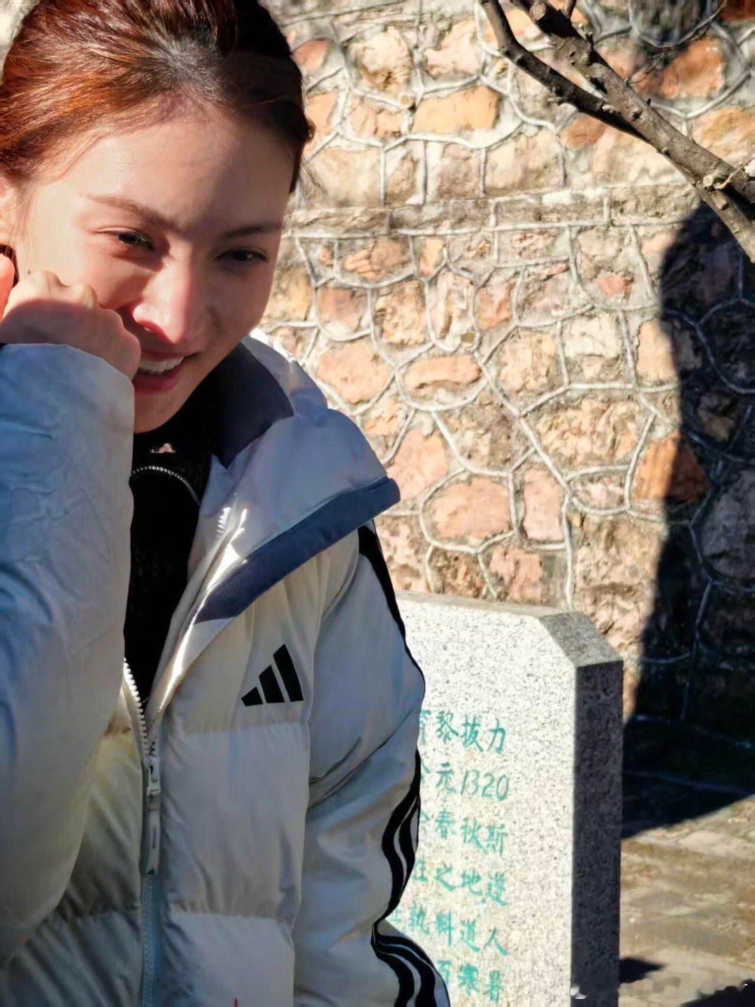 网友爬山祈福偶遇金晨,看来明星的白羽绒服也脏, 平衡了