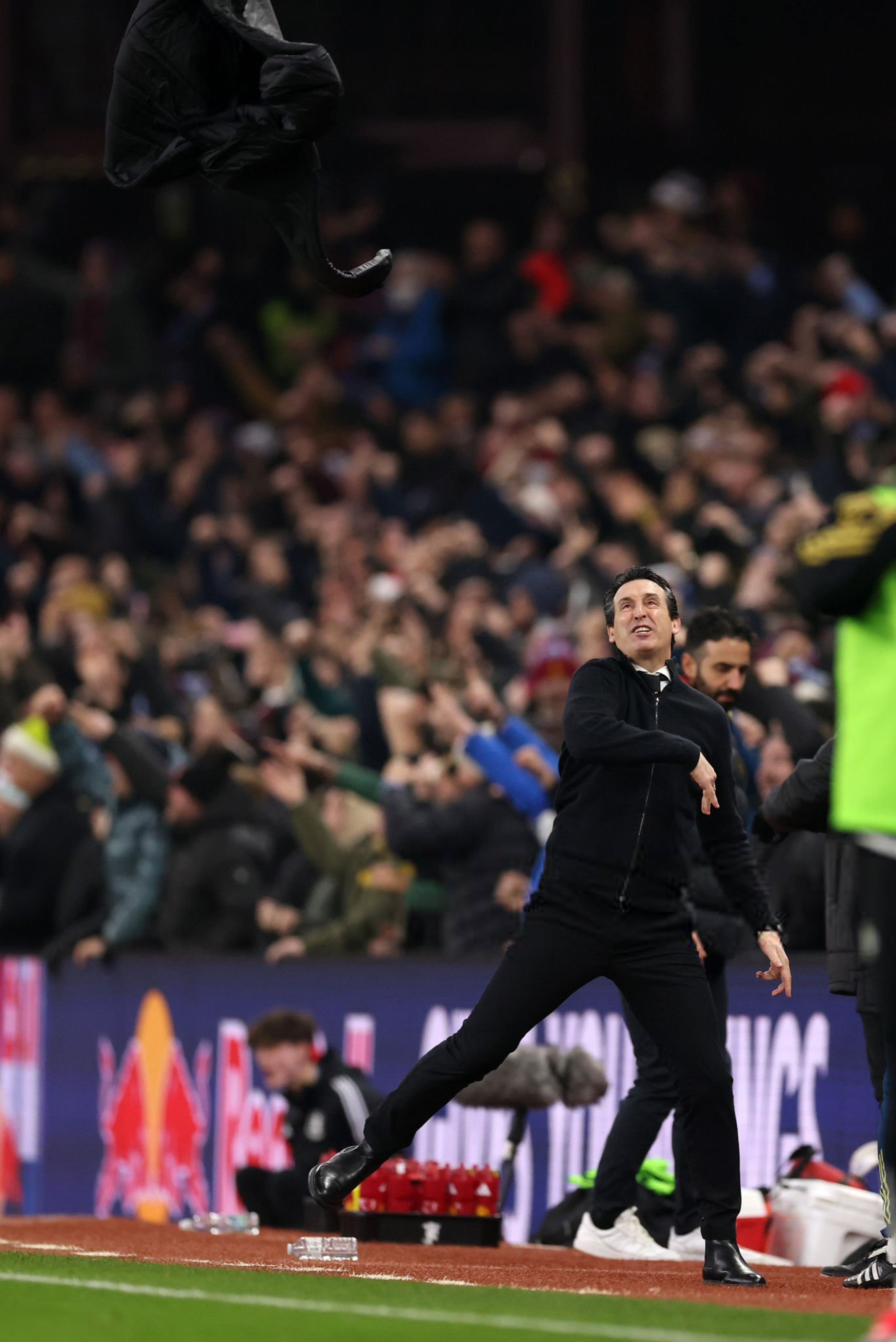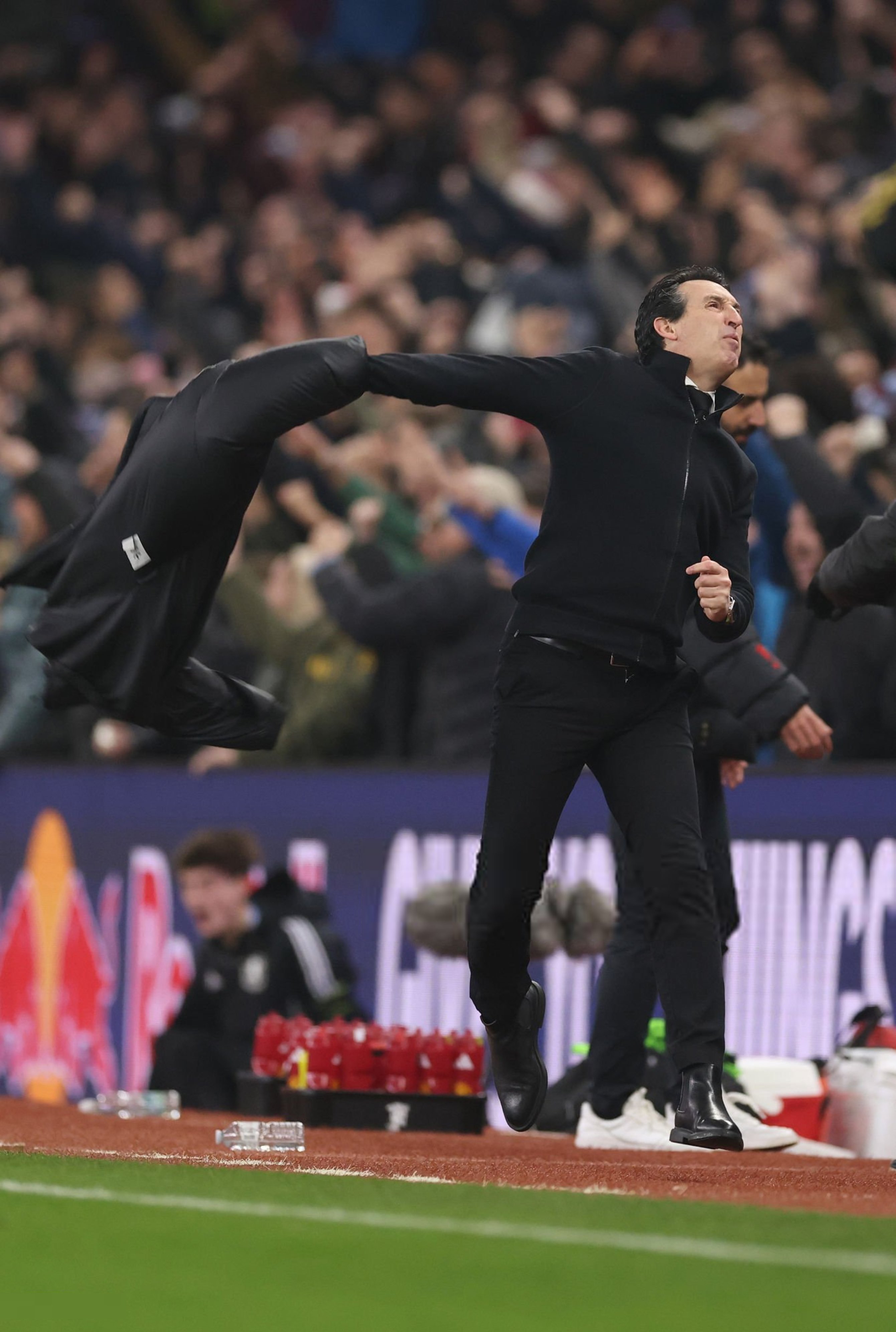 埃梅里庆祝进球。阿斯顿维拉vs曼联