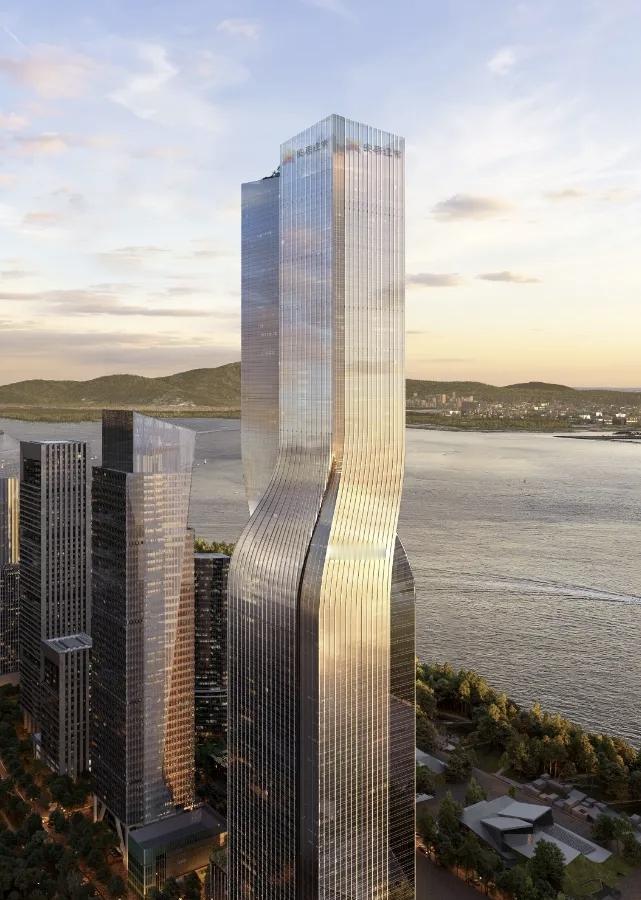深圳湾超级总部基地的地标性建筑——深圳湾金融中心大厦(深超总B塔),近期迎来施工关键节点:10月28日,项目主体结构核心筒成功冲出正负零,正式从“地下攻坚”转入“地上生长”阶段,朝着2029年落成目标稳步推进。这座曾承载恒大总部梦想的摩天楼,历经项目易主与设计升级,如今正以393.9米的海拔,重塑深圳湾天际线的核心轮廓。 项目的前世今生颇具波折。2017年,恒大以55.52亿元拿下深圳湾超级总部基地T208-0054地块,原计划打造企业总部大楼,后因债务危机导致项目于2021年停工。2022年11月,深圳市安和一号房地产开发有限公司以75.4亿元接手该地块,项目正式更名并启动设计优化,兴业银行随后宣布拟以不超过66亿元购置部分物业,用于集团及子公司运营,为项目注入强劲资金保障。作为深圳市场化化解房企债务风险的标志性案例,该项目的重启不仅盘活了核心资产,更彰显了深圳湾片区的商业价值与市场信心。 这座超级地标坐落于深圳湾超级总部基地“超级十字”核心节点,规划为地上82层、地下8层,总建筑面积约36.97万平方米,融合超甲级办公、商业、天际观光等高端复合业态。其施工难度堪称行业标杆:42.35米深的基坑创下亚洲民用建筑最深纪录,底板岩石强度最高达180MPa,且距离地铁11号线隧道仅4.4米,施工团队通过自主研发超高溜管系统、运用BIM+AI智能管控等技术,成功攻克超大体积混凝土浇筑、临铁基坑支护等多重难题。 设计上,项目以“鹏跃之巅”为核心理念,由佩里克拉克建筑师事务所与华东建筑设计研究院联合操刀,既呼应深圳湾的海洋特质,又赋予建筑向上生长的力量感。双曲面立面从底部正方形逐步收进为顶部修长轮廓,扭转形态勾勒出波光粼粼的肌理,宛如鲲鹏展翅;东、北、南三面入口大堂采用无柱设计,三层挑高空间营造出通透开阔的视觉效果,与主体曲线形成刚柔互补。升级后的方案还将裙楼层数提升至12层,进一步丰富了建筑的功能业态与城市界面。 建成后,这座393.9米的摩天楼将与周边A塔、C塔共同构成深圳湾超级总部基地的标志性天际线,成为集科技金融、高端商务与城市观光于一体的湾区新地标。作为深圳“全球城市规划设计巅峰之作”的重要组成,它不仅是交通与产业深度融合的TOD典范,更将为粤港澳大湾区的高端要素配置与经济协同发展,注入坚实的空间支撑。