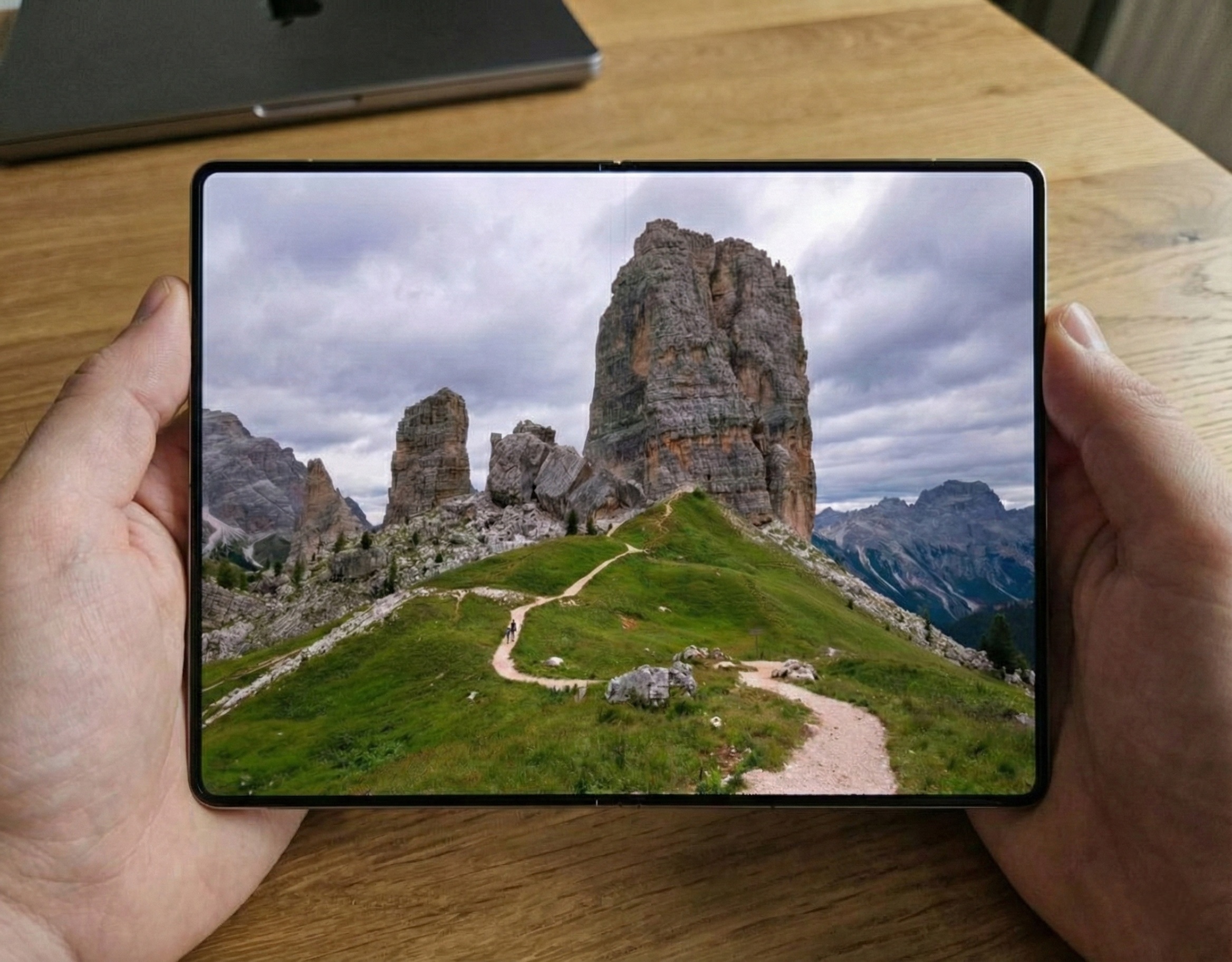 苹果iPhone Fold和三星Galaxy Wide Fold在我手里捧着的样子,4:3内屏,舒适!