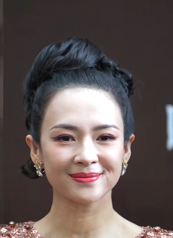 此时的章子怡比年轻时少了傲气,慈眉善目了许多,但嘴角还有一股不服输的气