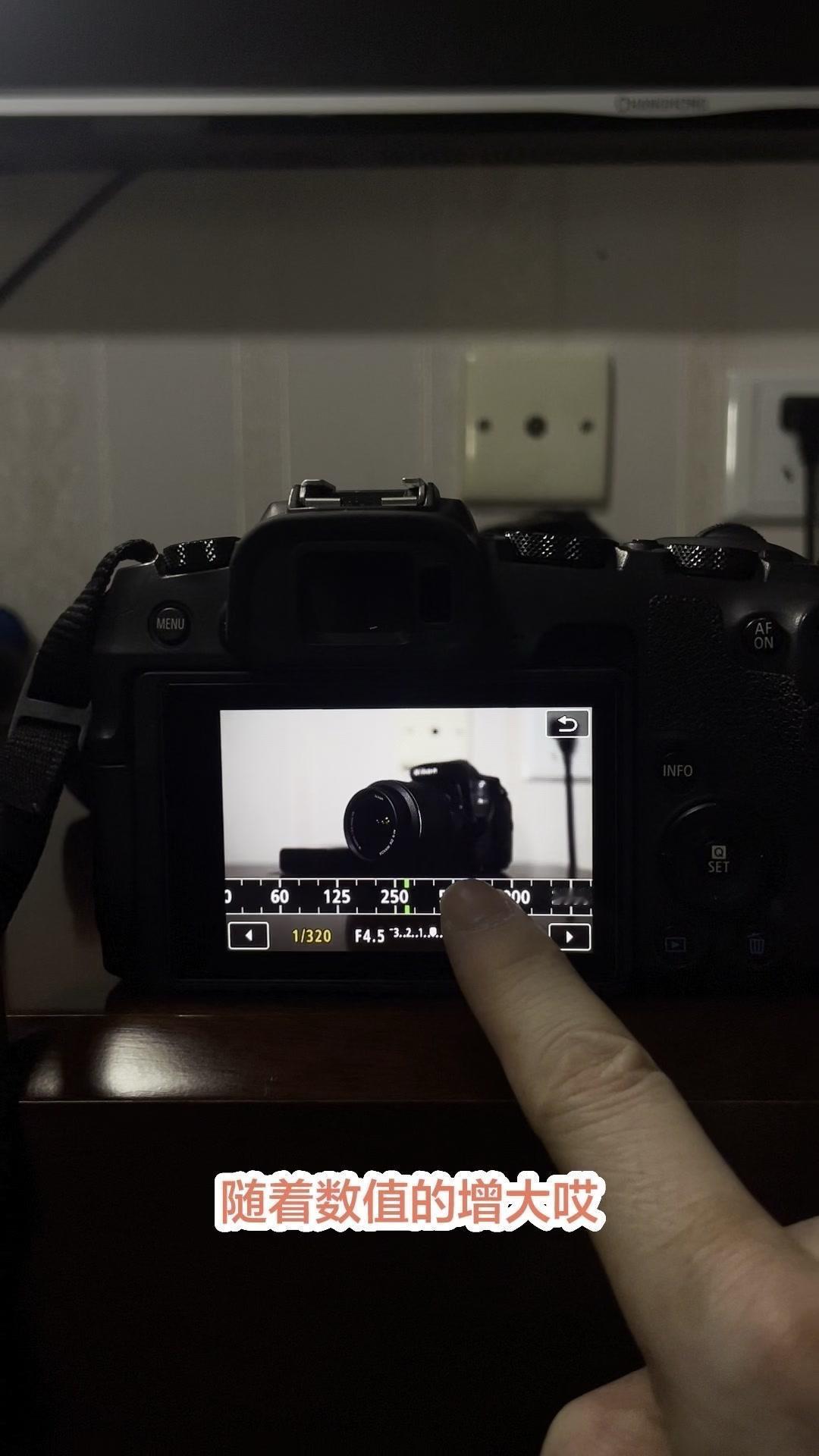 咱们现在看到的1/160就是快门。它能控制画面的明暗,把快门速度降低,随着数值减小,进入相机的光线就会越来越多,画面也就越来越亮。 要是把快门速度增大,进入相机的光亮就会越来越少,画面自然会越来越暗。