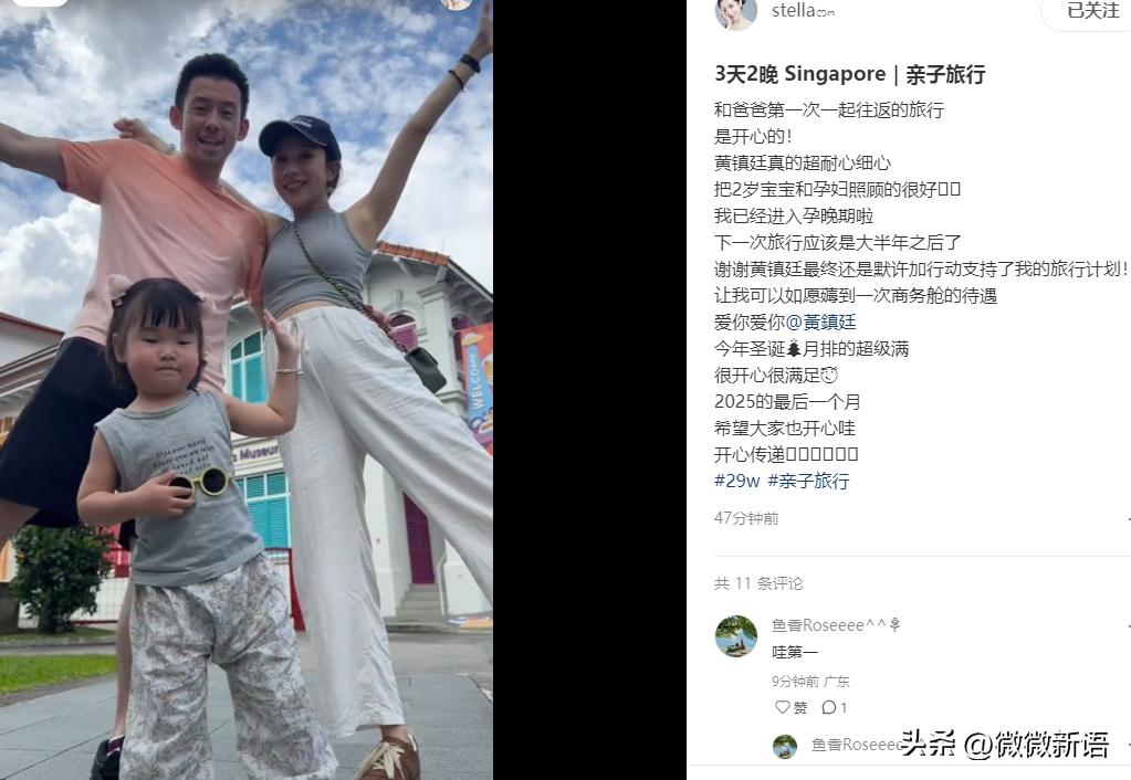 黄镇廷一看就是对媳妇儿好的男人。 刚刚看到黄镇廷的媳妇儿发了动态,他们一家四口去新加坡旅行了,二宝还在肚子里,不过已经知道是男孩子了,这下黄镇廷家将会是一儿一女,幸福啊。大圣一看就是情绪稳定的男人,对孩子和媳妇都很有耐心,现在他的媳妇儿已经到了孕晚期,难得大圣休假,她和大圣商量后,他们就去新加坡旅行了,一共三天两夜,看到大圣媳妇儿说:“和爸爸第一次一起往返的旅行,是开心的!黄镇廷真的超耐心细心,把2岁宝宝和孕妇照顾的很好。” 大圣除了训练和打球,就是陪家人了,楹楹也长大了,等着弟弟出生了,楹楹还可以照顾小弟弟了。大圣的媳妇儿也很漂亮,看着也是很温柔的女生,孕晚期了身材还那么好,每次她拍照的时候大圣也会很配合的,幸福的一家人。 乒超总决赛结束后,港队也休假了,看到杜凯琹是去云南旅行,去看了日照金山。大圣是带着媳妇和女儿一起出去旅行,有责任心的男人,下个月他也要出去打比赛了,加油!