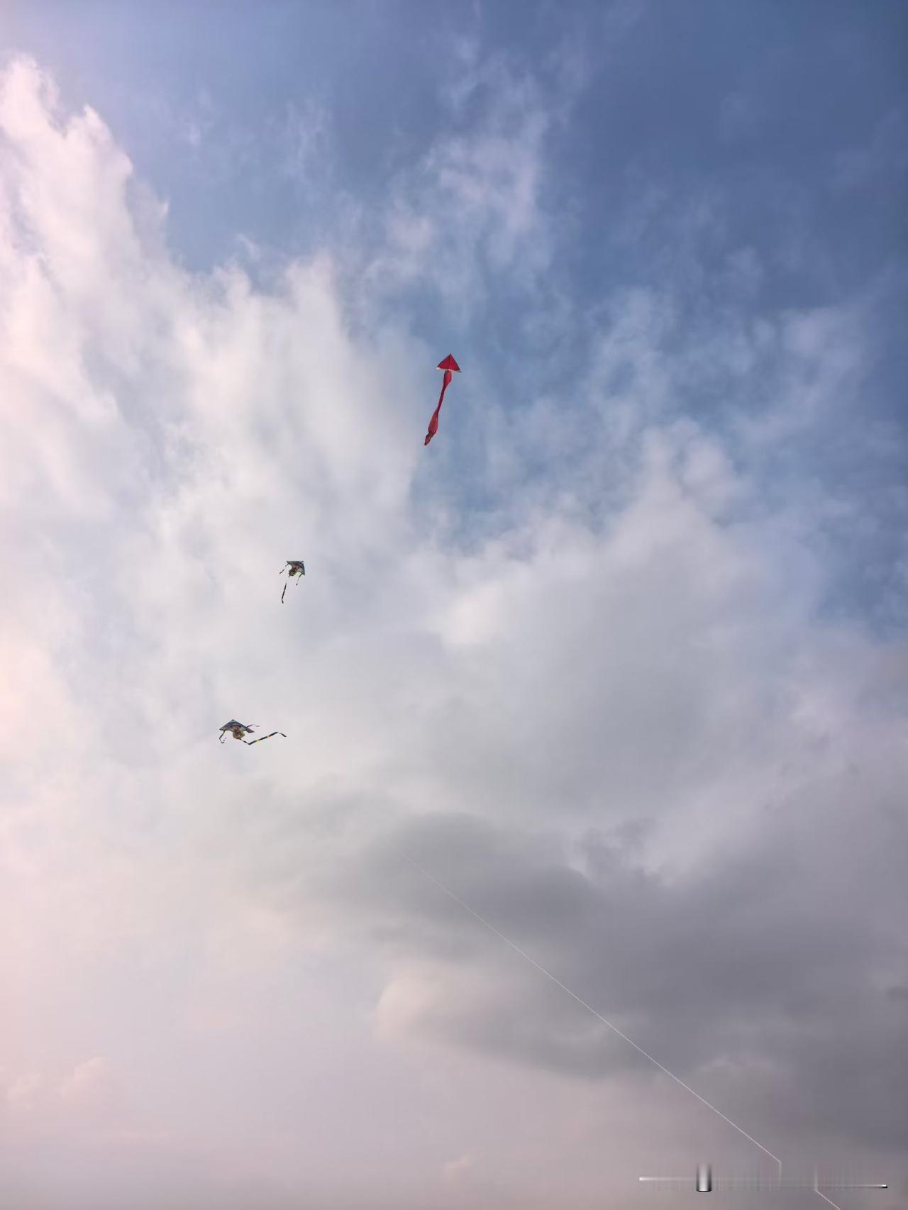 今天天气是真的好, 江边的风也特别给力,正好适合放风筝。抬头看天,蓝悠悠的底色上飘着大朵大朵的云,我的风筝带着长尾巴在云边晃悠,旁边还有两只花色风筝跟着飘,看着它们在天上摇摇晃晃的样子,心里别提多舒坦了。 江风扑在脸上,吹走了所有烦心事,就这么站着看风筝飞,感觉整个人都跟着飘起来了,这种简单的快乐也太治愈啦。