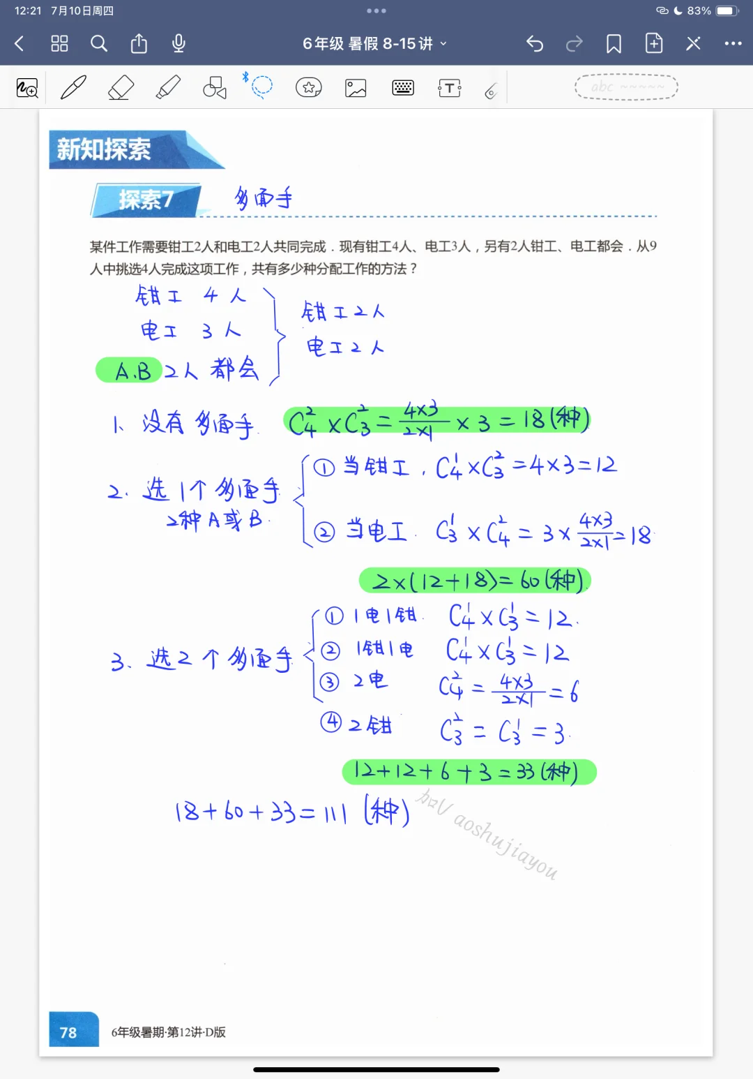 《排列组合》五年级暑假奥数创新班课堂笔