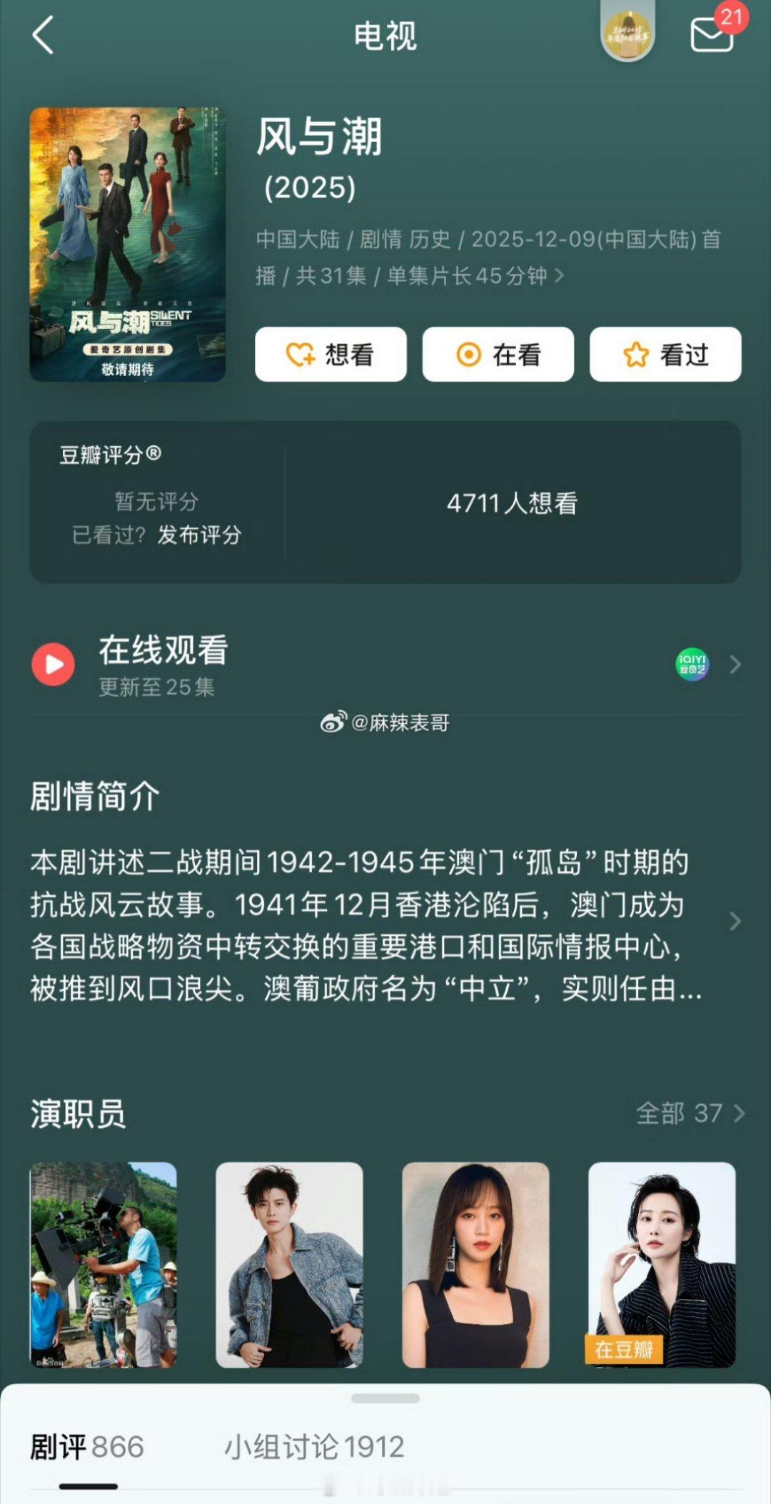 有眼尖的网友发现虞书欣主演的《双轨》、成毅主演的《长安二十四计》、任嘉伦主演的《风与潮》都是快播完了,但是到现在还没有出db评分,这是咋回事呢?