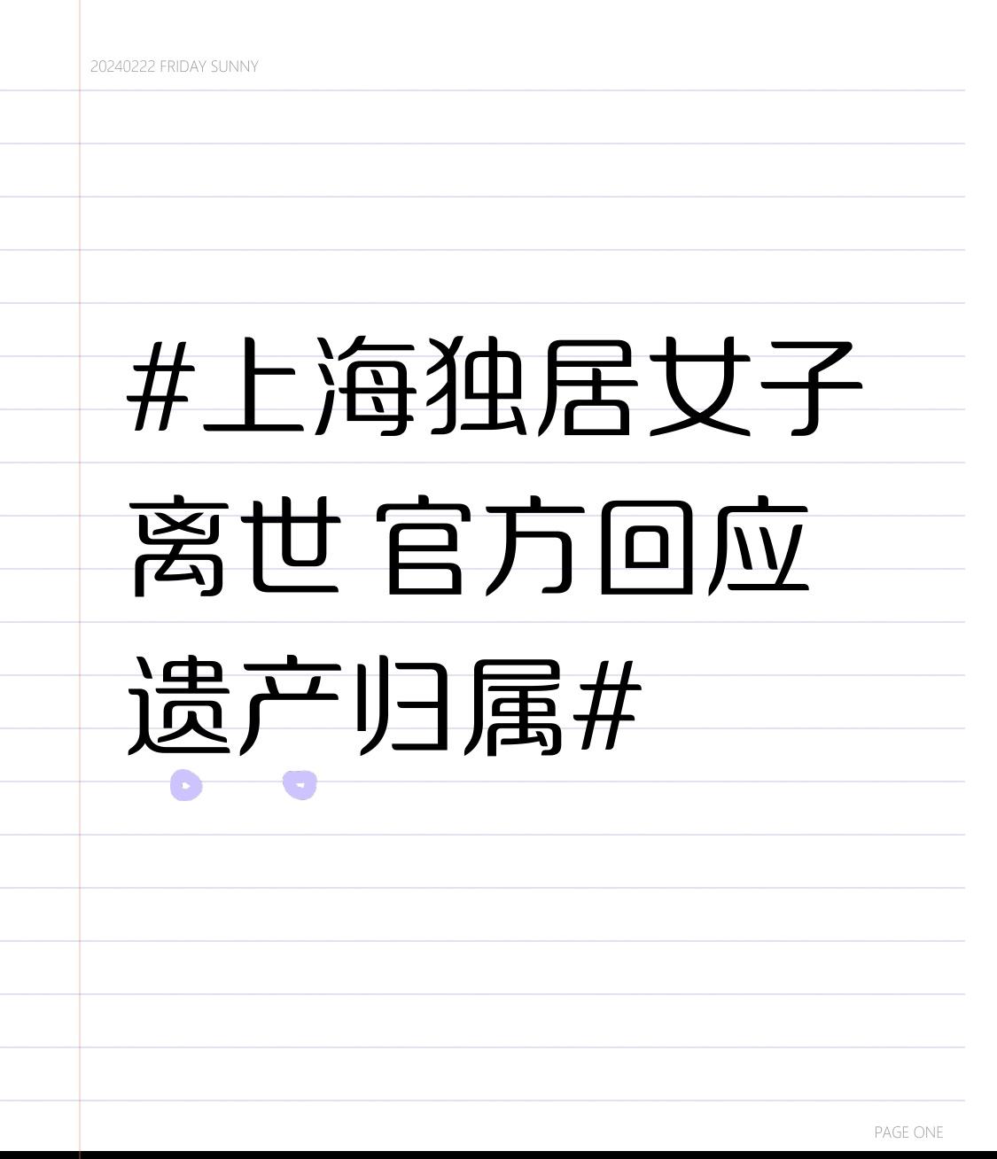 上海独居女子离世 官方回应遗产归属 上海46岁独居女子蒋女士离世事件引发了大家对遗产归属等问题的讨论。蒋女士父母早逝、未婚无子女,今年10月突发脑溢血,远房表弟还垫付了医药费,可惜她还是在12月14日去世。 官方通报里,居委正推进善后,预计12月底办告别仪式。经核查她暂无法定继承人,12月22日居委会将向法院申请确认遗产管理人。若民政局被指定,会处理好债权债务,剩余财产用于公益。 这事儿也给大家提了个醒,意定监护和立遗嘱真的很重要,能避免很多不必要的麻烦。