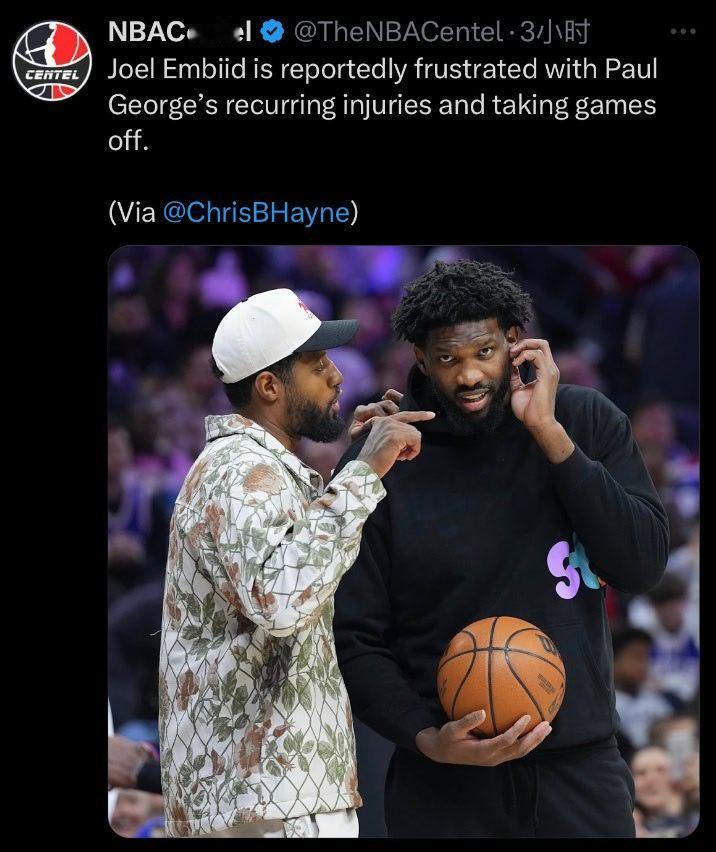 恩比德对保罗乔治反复受伤感到沮丧,我们有没有可能在明天看到,保罗乔治对恩比德反复受伤感到沮丧,另外有没有可能在后天看到,马克西对保罗乔治和恩比德反复受伤感到沮丧?新赛季篮不住NBA