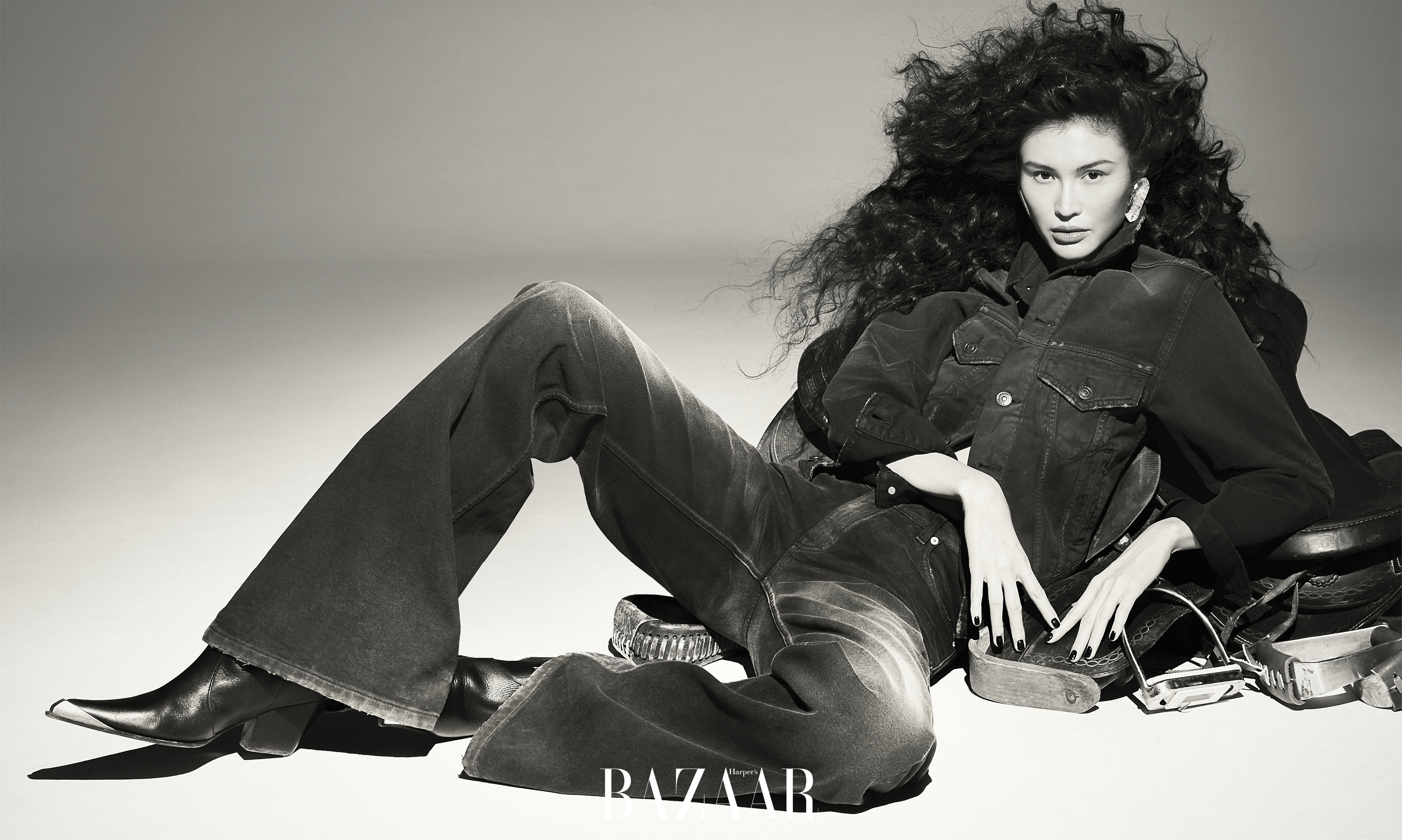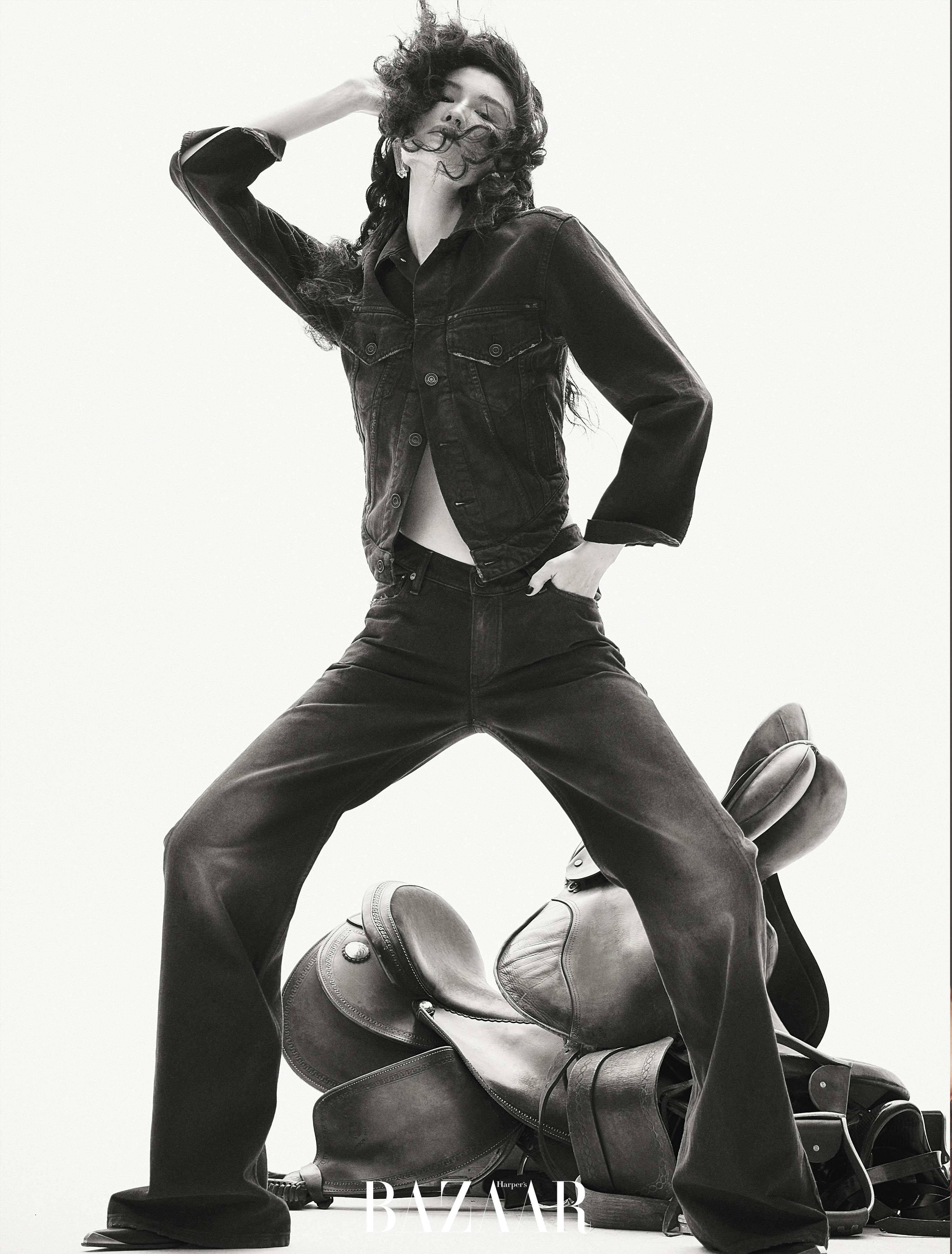 何穗身穿 Ralph Lauren 坐镇时尚芭莎一月开年刊封面 !超模归来 ,姐的表现力真是没得说 ,好精彩的一组 👏摄影 :Nick Yang何穗女骑士芭莎封面大片