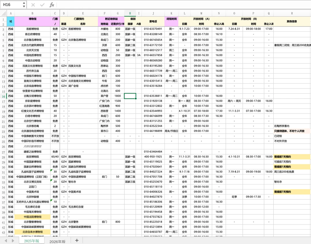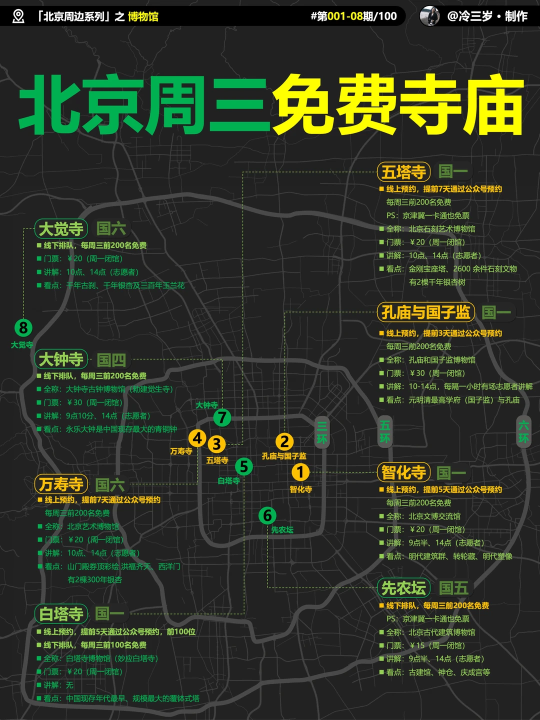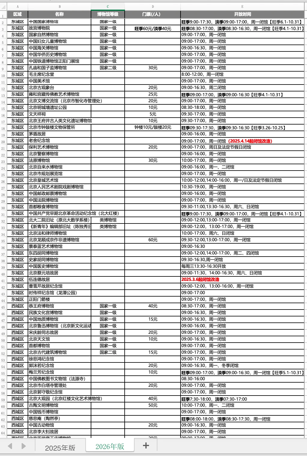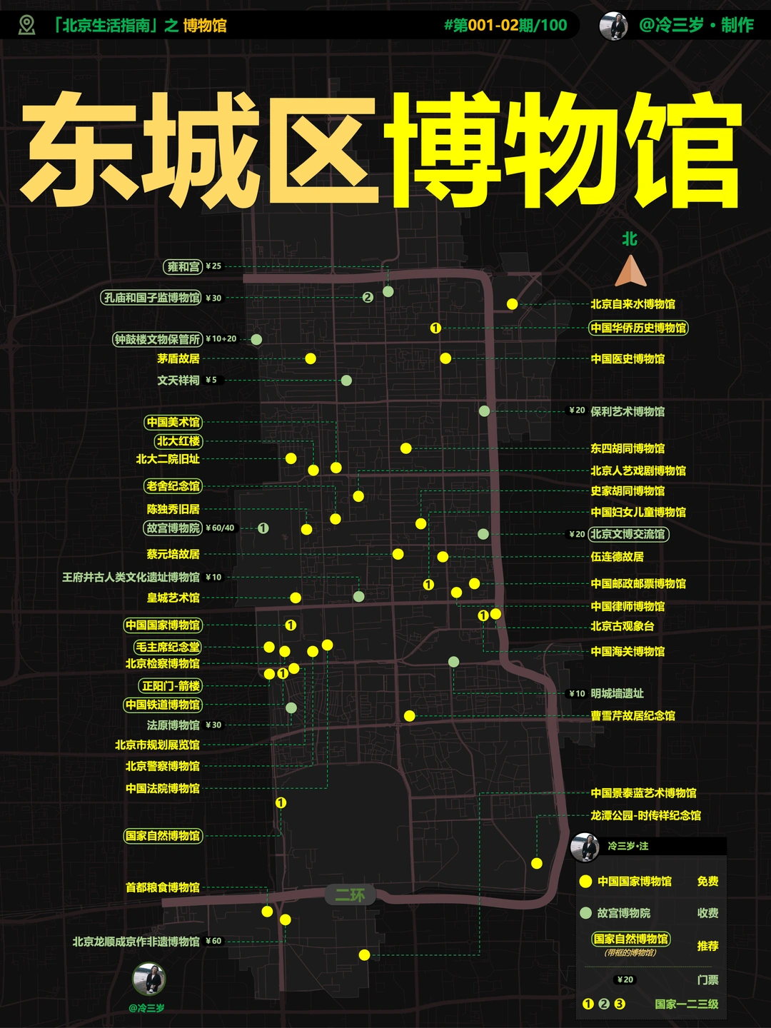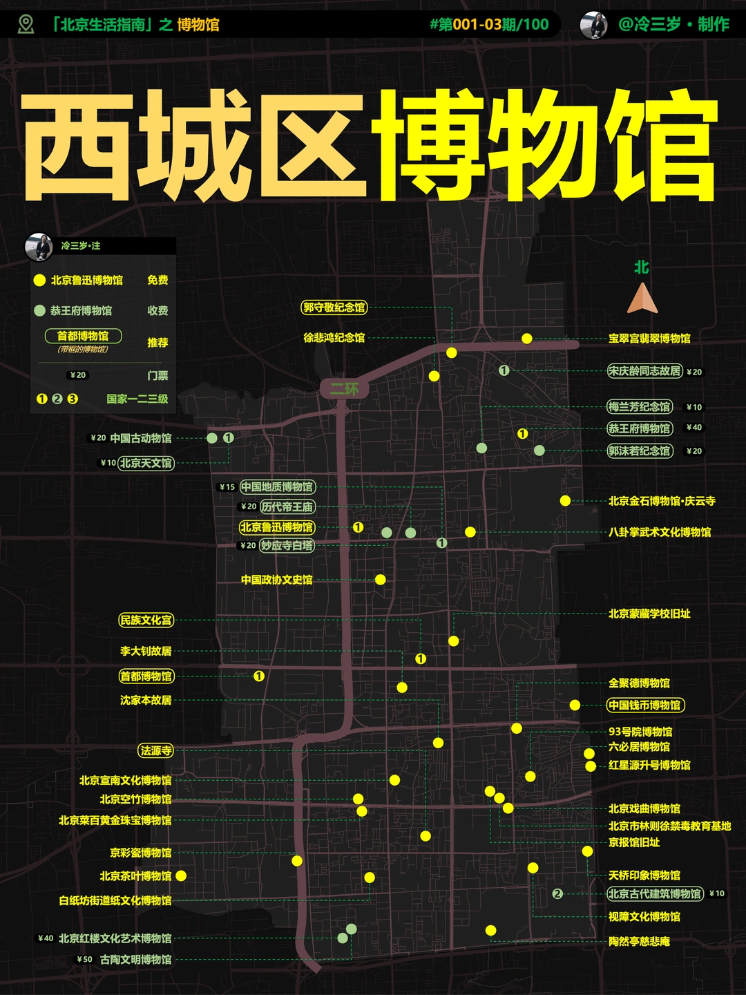 就北京博物馆,2年里,我先后画了4版 虽然一直都没找到理想的方式 但也算是见证了我这两年在地图上的成长和变化 [失望R]今天早上在整理这些内容时候,还挺感慨的 想和大家分享下 PS.我在互联网工作了10年 对格子间,一眼看到头的牛马日子,累了 今年算想通了后续想过什么样的生活 也攒了第一桶金 可以支撑自己提前退休,开始自驾全国了 后面可以做自己想做,取悦自己的事儿了 [集美R]这两年工作之余把北京各类各处的地图当练手 目前算是达到了70~75分 后续希望能有更多长进,达到符合自己预期的80分 🚗并且能够以全国各地来实操 加上我的旅居生活,做实地感受 弱弱问下,不知道有多少粉丝关注了我半年以上 (毕竟我分享地图,攻略还不算太久。但我希望我能够作为一辈子的爱好来做,若干年后,我想我可以问“有多少粉丝是关注了我10年以上”) 我先把博物馆的图发出来 大家感受下 [集美R][集美R]并提提建议吧 [一R]图1-2:是最近画的 [二R]图3:是25年初画的 (这版很艰难,地图的路、颜色等都是我一笔一笔画出来的,纯底图我就要画半天) [三R]图4-5:是24年(下)画的 (:这版更简单,当时我还想把地铁等标识画进去,但一张图真的容不下这么多信息了 (:图3,其实是在4/5的基础上做了改良,但成本依旧很高 [四R]图6/16:是24年(上)画的 (:这算是我的启蒙,各类地图上字太多,我就取了自己导航的轨迹作为底图,然后在上面标识;这就很局限了,我没有去过,没轨迹的就一片空白 -------- 以下是展开的,希望对大家有用 [一R]图7-13:是最近画的,这版地图收率了300+博物馆,有些是故居等 其中图7-11,是东城、西城、朝阳、海淀、通州各区的地图 图18:是对应的名单 [二R]图14-15:是25年年初画的,这版收率了200+博物馆,基本都是博物馆 图17:是对应的名单,具体信息相对比较完善 [失望R][失望R]对这两次画的,我也不知道哪个好点 25年初感觉更清秀一些 最近画的黑底,本来抱有较高预期,画完之后,也不太好看 我有些迷茫了 [向右R]PS.这几版地图,以及名单excel,都更新到自己的文件夹里了 已经拿下北京游玩攻略,或者博物馆攻略的,可以直接进去看到 [合十R][合十R][抱拳R][抱拳R]也谢谢大家陪我一些进化ing