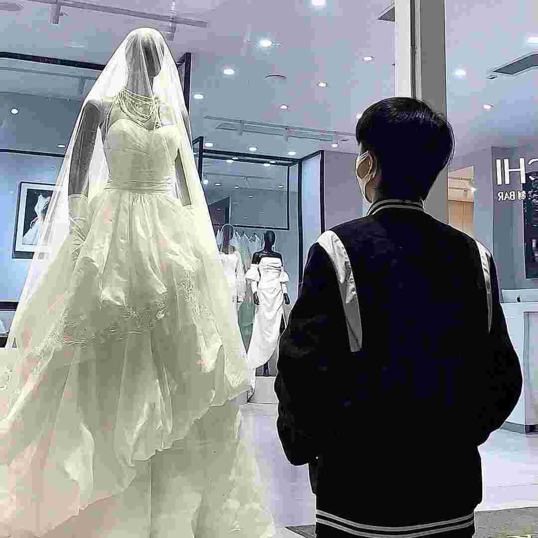 新娘很漂亮啊,但我更喜欢戴眼镜那个