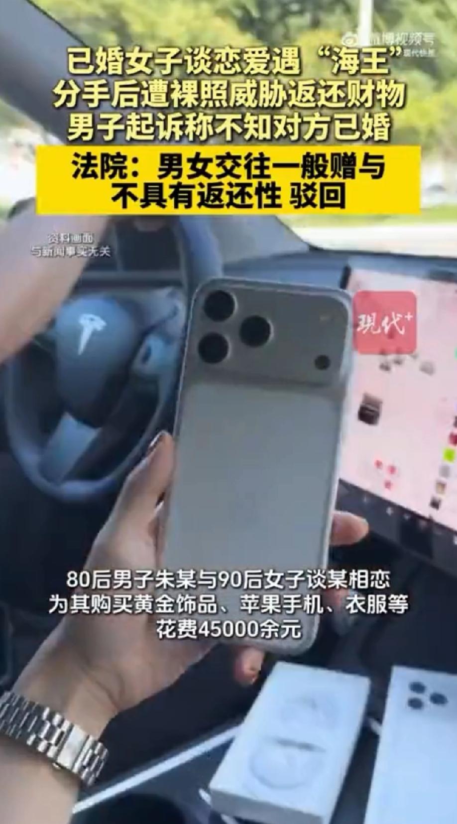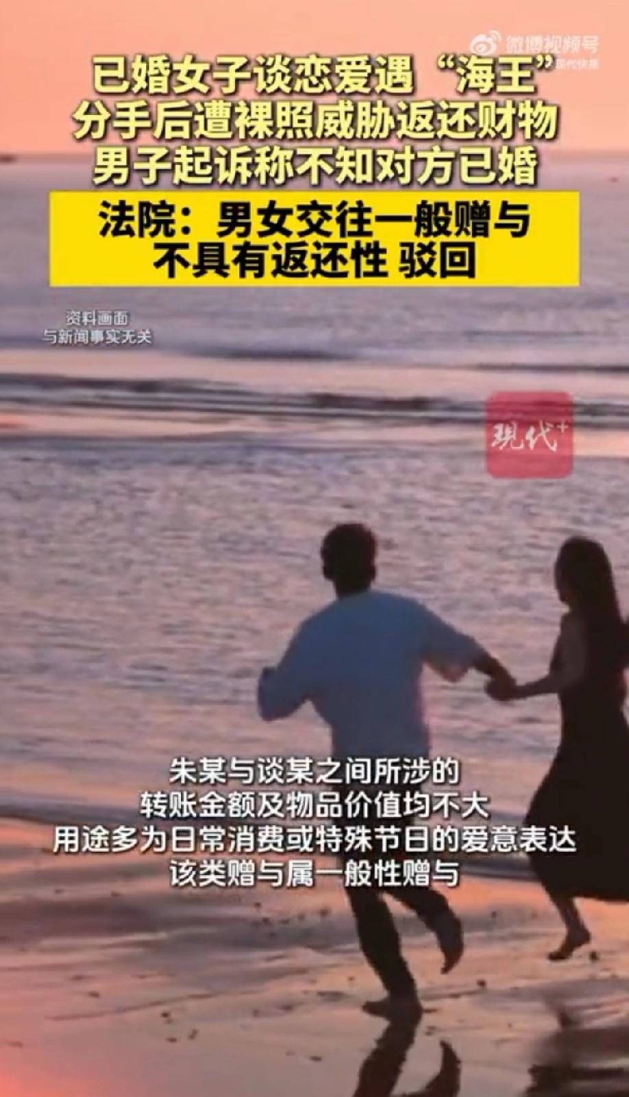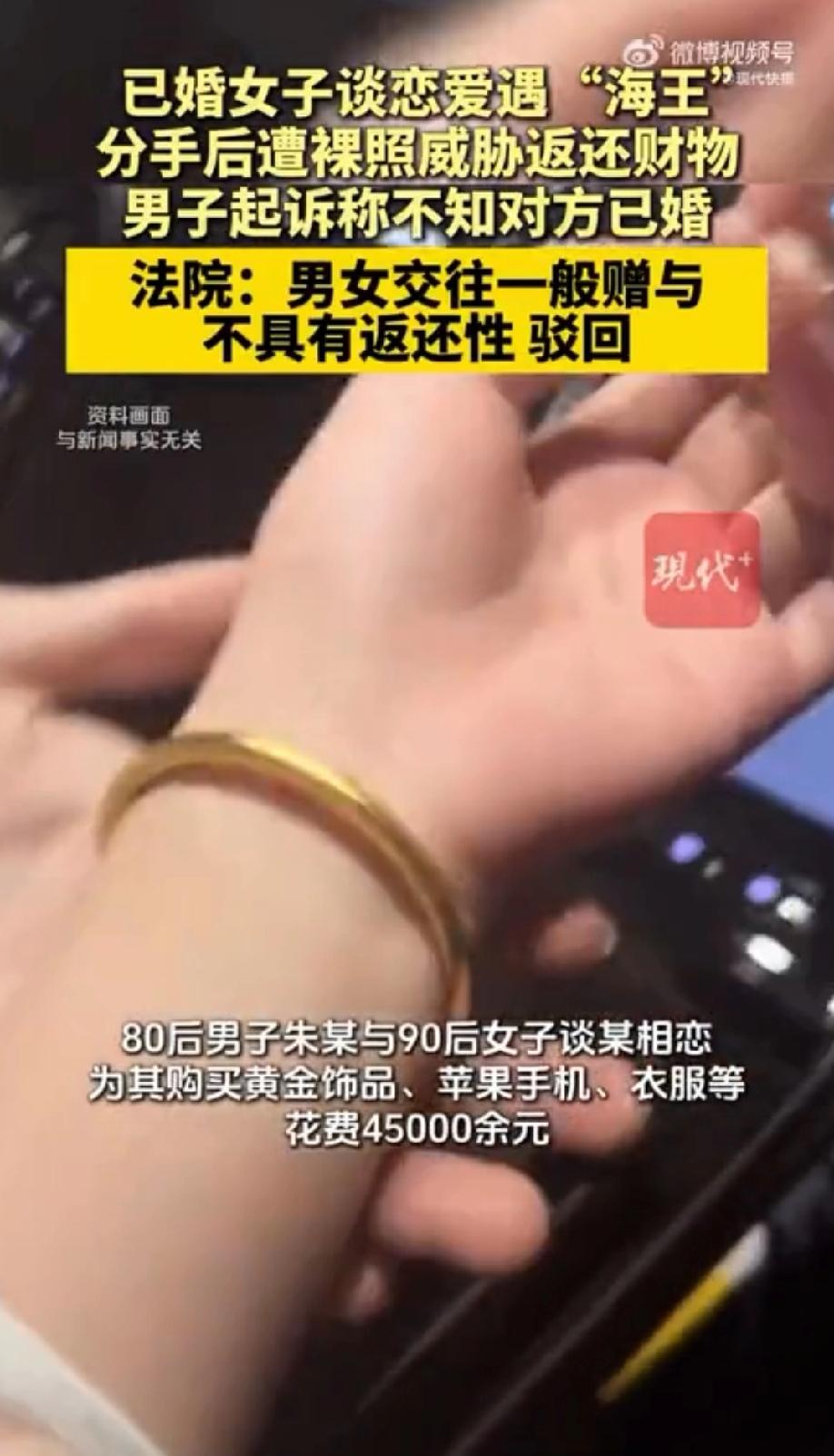 “想白嫖想疯了吧!”广东中山,男子疯狂追求已婚女子,不仅为其购买黄金首饰和苹果手机,还经常给她转账520、购买衣服,终于博得女子的欢心。相恋一段时间后,男子吃干抹净就想拍屁股走人,拿出女子的裸照威胁,要求女子返还恋爱期间的花销45000余元。遭到拒绝后,男子把女子告上法庭,声称他这是以结婚为目的的赠与,女子恶意隐瞒已婚事实,必须返还这些财物。法院审理发现,男子以同样的手段,同时和多名女性保持恋爱关系,最终作出的判决大快人心。 收到法院的传票,谭女士傻眼了,她觉得这一幕多少有些讽刺,前不久还甜言蜜语哄她开心的人,如今却成了原告。 状告谭女士的,正是80后男子朱某。朱某是个出手阔绰的主儿,遇上90后的谭女士,便展开了猛烈的追求。 对于追求女士,朱某算得上经验丰富,他笃定只要舍得花钱,再难追的姑娘也能拿下。 于是,黄金首饰、苹果手机、漂亮衣服流水似的送到谭女士面前,微信里还时不时蹦出520元的转账,每一笔都透着“我对你很上心”的意味。 在朱某的糖衣炮弹攻势下,谭女士渐渐动了心,两人顺理成章地走到了一起。 热恋时的朱某甜言蜜语挂在嘴边,可日子一久,他的新鲜感慢慢褪去,竟然盘算着在谭女士这里大赚一笔。 朱某算了下,恋爱期间他一共给谭女士花了45000余元,现在分手,那就要把所有的损失都挽回来,妥妥的来一场白嫖。 让人不齿的是,朱某为了逼谭女士还钱,竟拿出两人恋爱时拍下的裸照威胁她,丝毫没有商量的余地。 谭女士又气又怕,她怎么也想不到,曾经口口声声说爱自己的男人,翻脸竟如此难看。面对朱某的无理要求,谭女士想都没想就拒绝了。 见威胁不成,朱某索性一纸诉状将谭女士告上法庭。 法庭上,朱某声称自己当初是抱着结婚的目的才对谭女士大方馈赠,谁料谭女士恶意隐瞒了已婚的事实,欺骗了他的感情和金钱,这笔钱必须还。 朱某本以为自己的说法天衣无缝,却没料到法院的调查给了他一记响亮的耳光。 法官翻阅朱某的微信转账记录时发现,他口中的“特殊心意”520元转账,不仅发给了谭女士,还在同一时间频繁出现在其他多名女性的聊天记录里。 由此可见,朱某就是妥妥的海王,打着恋爱的名义骗取感情,还偷偷拍下裸照,就是想分手的时候索要财物。 朱某并非只和谭女士一人交往,他所谓的“以结婚为目的的赠与”根本站不住脚。 结合案件细节,朱某为谭女士花费的45000余元,涉及的转账金额和物品价值都不大,用途多是日常消费和节日爱意表达,更加符合男女交往过程中的一般赠与。 《民法典》第六百五十七条规定,赠与合同是赠与人将自己的财产无偿给予受赠人,受赠人表示接受赠与的合同。 朱某为谭女士购买的黄金首饰、苹果手机、衣物及520元特殊金额转账,从性质上看均属于情侣间增进感情的日常支出,符合情侣间日常互动习惯。 从金额来看,45000余元系恋爱期间累计花销,分摊至日常消费、节日馈赠等场景后,单笔金额未超出合理交往范畴,且朱某已实际交付财物、谭女士已接受,赠与合同已履行完毕。 根据法律规定,一般赠与在财产权利转移后,若无法定撤销事由,赠与人无权要求返还。 《民法典》第六百六十一条规定,赠与可以附义务。赠与附义务的,受赠人应当按照约定履行义务。 朱某在与谭女士交往期间,同时向多名女性发送520元转账,其行为表明其并无专一缔结婚姻的真实意愿,所谓“结婚目的”仅为索要财物的借口。 另一方面,双方未就“结婚”作为赠与条件达成任何明示或默示约定,朱某也未提交证据证明谭女士知晓或认可该“条件”。 反之,朱某分手后以裸照威胁索款的行为,进一步印证其赠与初衷并非缔结婚姻,而是基于短期交往的“有偿投入”,不符合附条件赠与的法律特征。 因此,朱某以“结婚目的未达成”要求返还财物,既无法律依据,也无事实基础。 最终,法院依法驳回了朱某的诉讼请求。 朱某偷鸡不成蚀把米,不仅没要回一分钱,还落得个难堪的下场。