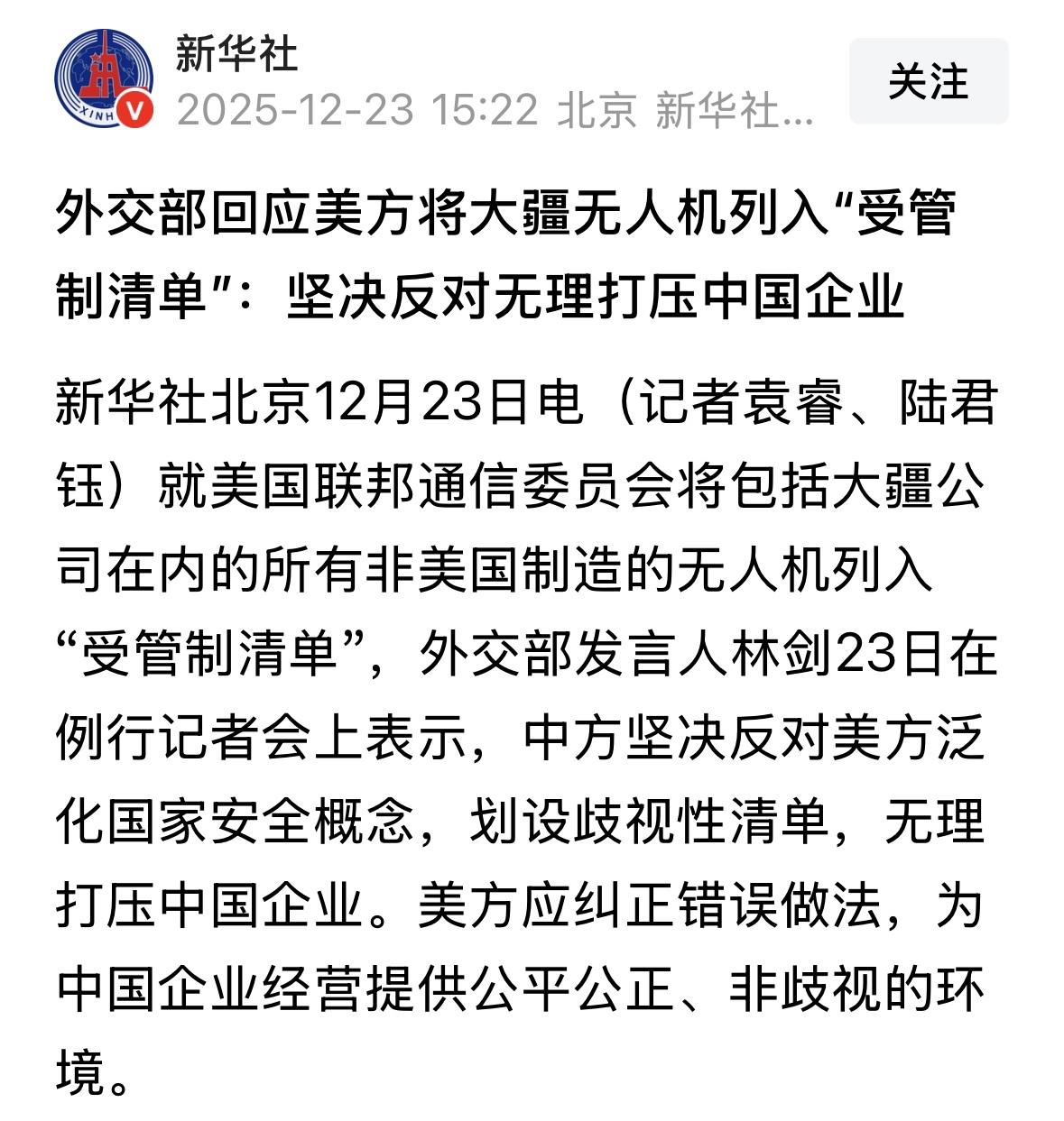 虽然是民用,但是军用也没问题,对等措施,我们也不采购美国的无人机!