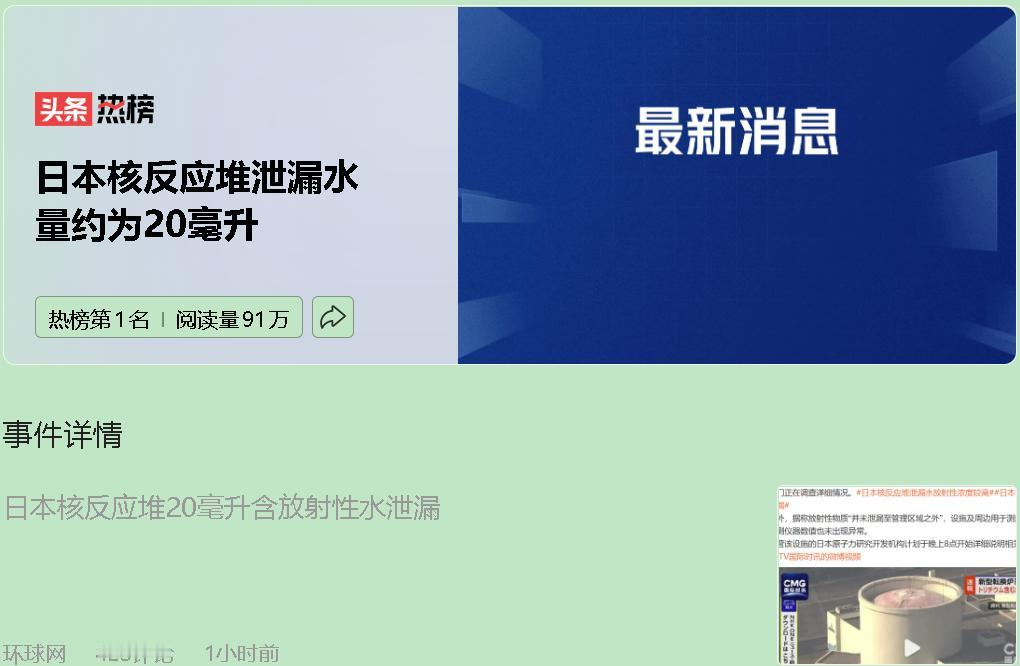 又一勺“核废水”来了,听着就心累是吧?这次是日本拆了二十年的老反应堆,漏了一汤勺高浓度氚水,还说“没事儿”。我直接说:这套路我真不信了,太熟了。 哪是漏水啊,这漏的是信任。2003年停的堆,拆到现在还能让高浓度水溅到人?这安全措施是纸糊的吗?官方通报永远那几句:“量很少”、“没外泄”、“在监测”。可最关键的呢?水怎么喷出来的?浓度到底多高?人有没有事?全在“调查中”。这话术,和福岛排海时是不是一个模子刻的? 想想就憋屈。昨天东电刚说完福岛已排13万吨,今天这边拆个反应堆也能整出“高浓度”溅射。一次次的“小意外”,一次次的“请放心”,可谁还敢放心?新潟县六成民众反对重启核电站,七成不信任东电,这数字已经狠狠打脸了。 所以别只看“20毫升”。这就像个警示灯,哔哔响着告诉我们:那边的话,听一半都得存疑。核安全这事,永远不能靠别人拍胸脯,尤其是这套路玩多了的。咱们得睁大眼睛,较真到底。毕竟,大海不会说话,可代价终会要人承担。
