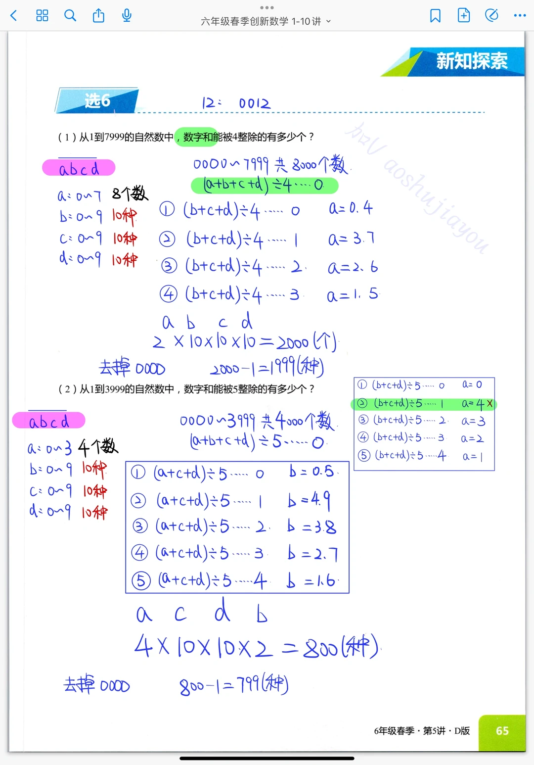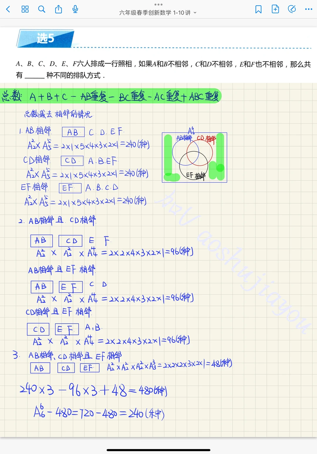 《计数综合》六年级春季创新班奥数课堂笔记