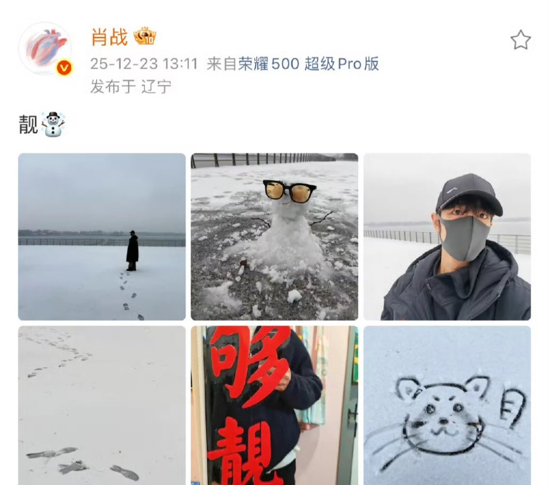 肖战堆的雪人倒了原来肖战在盘锦堆了个戴墨镜的“靓雪人”,结果中午就化了。最暖的是,有路过网友看到残雪,默默把它重新堆好、插上树枝、戴上墨镜。谁说雪人不会说话?它明明在说:善意可以传递。