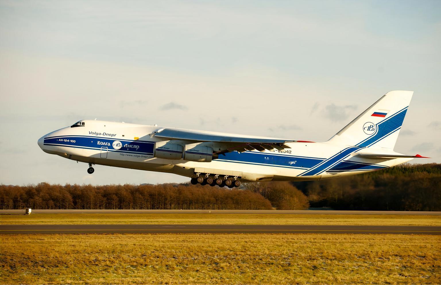 乌克兰安-124“秃鹰”运输机安-124是安东诺夫设计局研制的一款四发远程运输机,北约代号“秃鹰”。安-124于1982年底首次试飞,1986年初交付使用。1985年,安-124创下了载重171219千克物资,飞行高度10750米的纪录,打破了由美国C-5运输机创造的载重、高度世界纪录。此外,安-124还拥有其他多项世界纪录。安-124机腹贴近地面,机头机尾均设有全尺寸货舱门,方便装卸工作。其货舱分为上下两层。上层舱室较狭小,除6名机组人员和1名货物装卸员外,还可运载88名乘客。下层主货舱容积为1013.76立方米,载重可达150吨。货舱顶部装有2个起重能力为10吨的吊车,地板上还有2部牵引力为3吨的绞盘车。安-124装有4台推力为229千牛的D-18T涡扇发动机。|