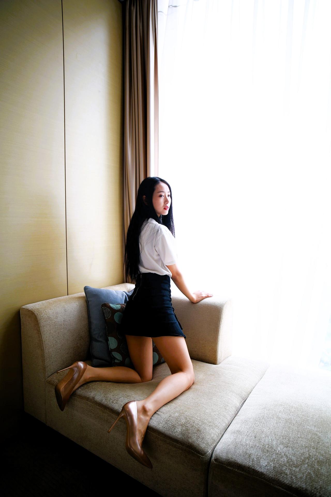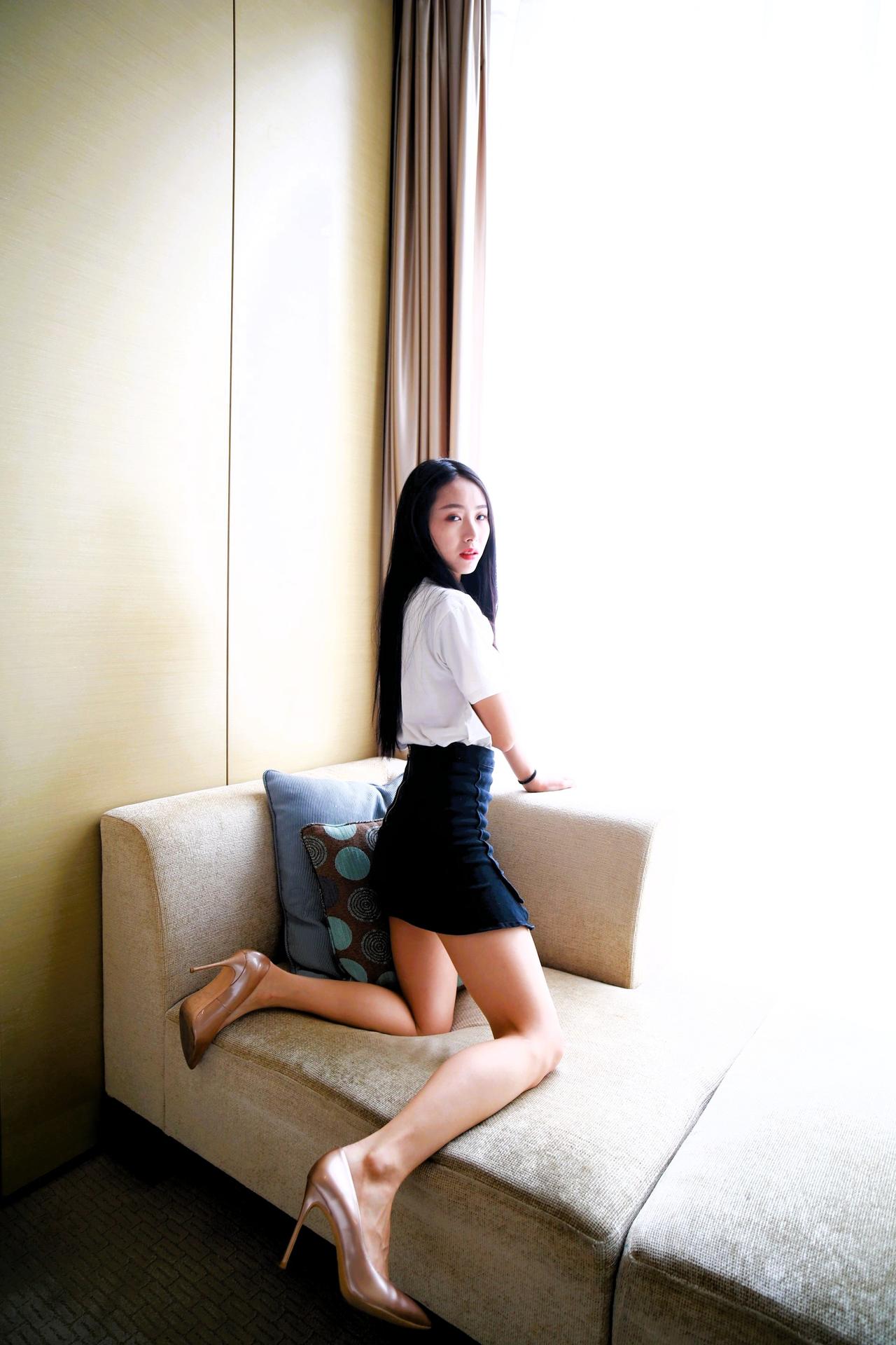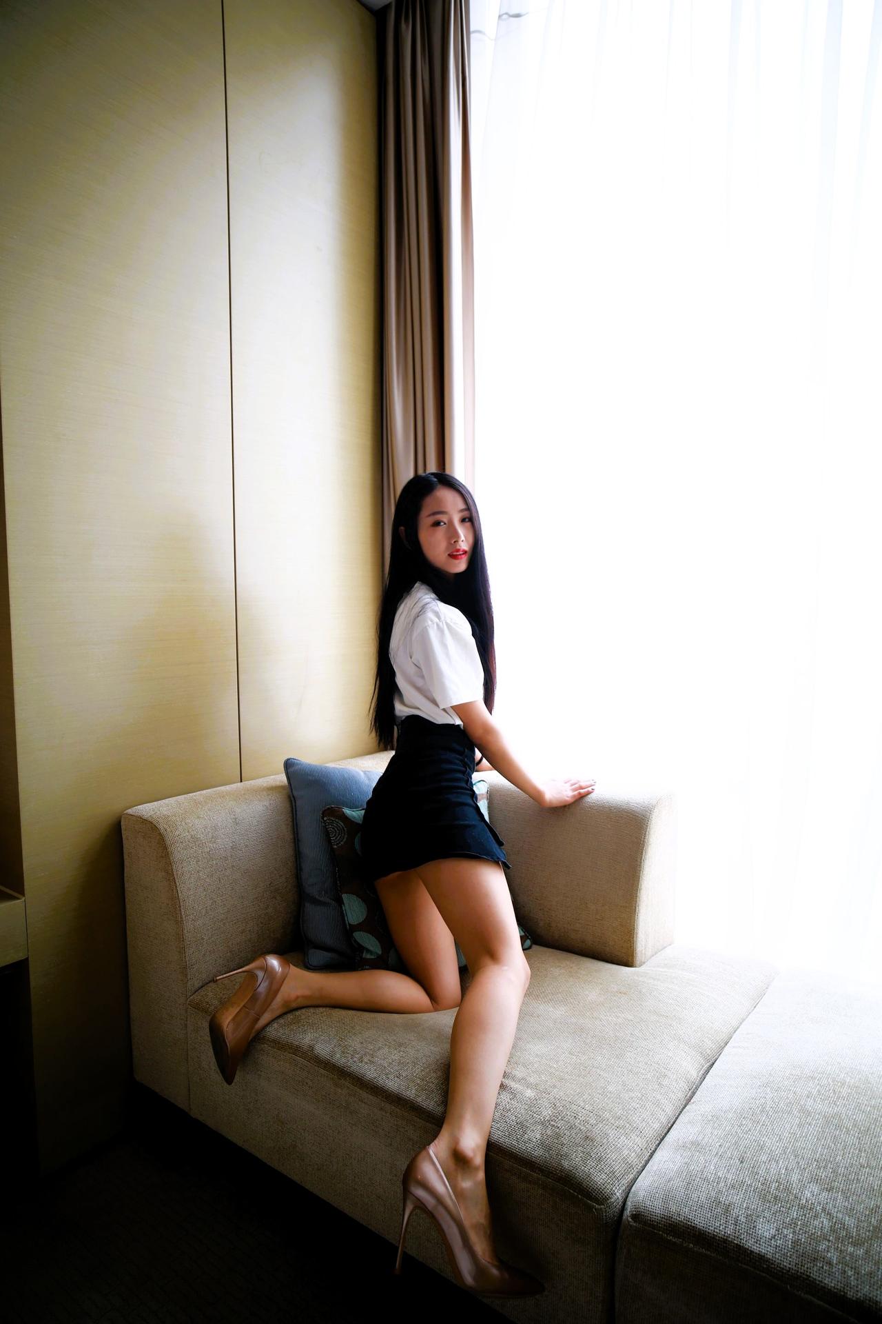 T 黑裙衬着垂落的长发,连抬手的动作都裹着温温的柔~