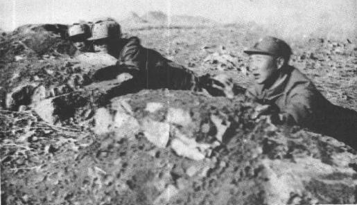 一九三八年,杨成武(右)、高鹏(中)、罗元发(左)在前线指挥作战。