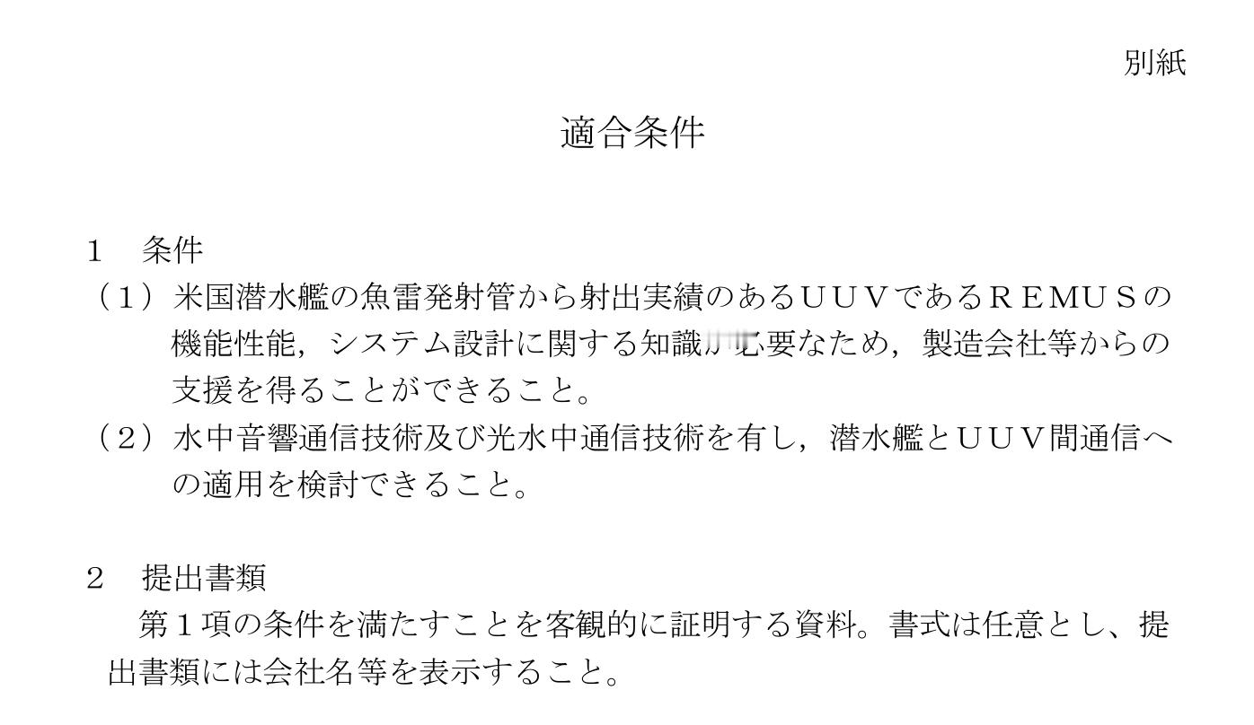 ATLA发布潜艇发射型UUV资料作成的招标,参加者需要了解美制REMUS机能、UUV系统设计和水中声光通信技术