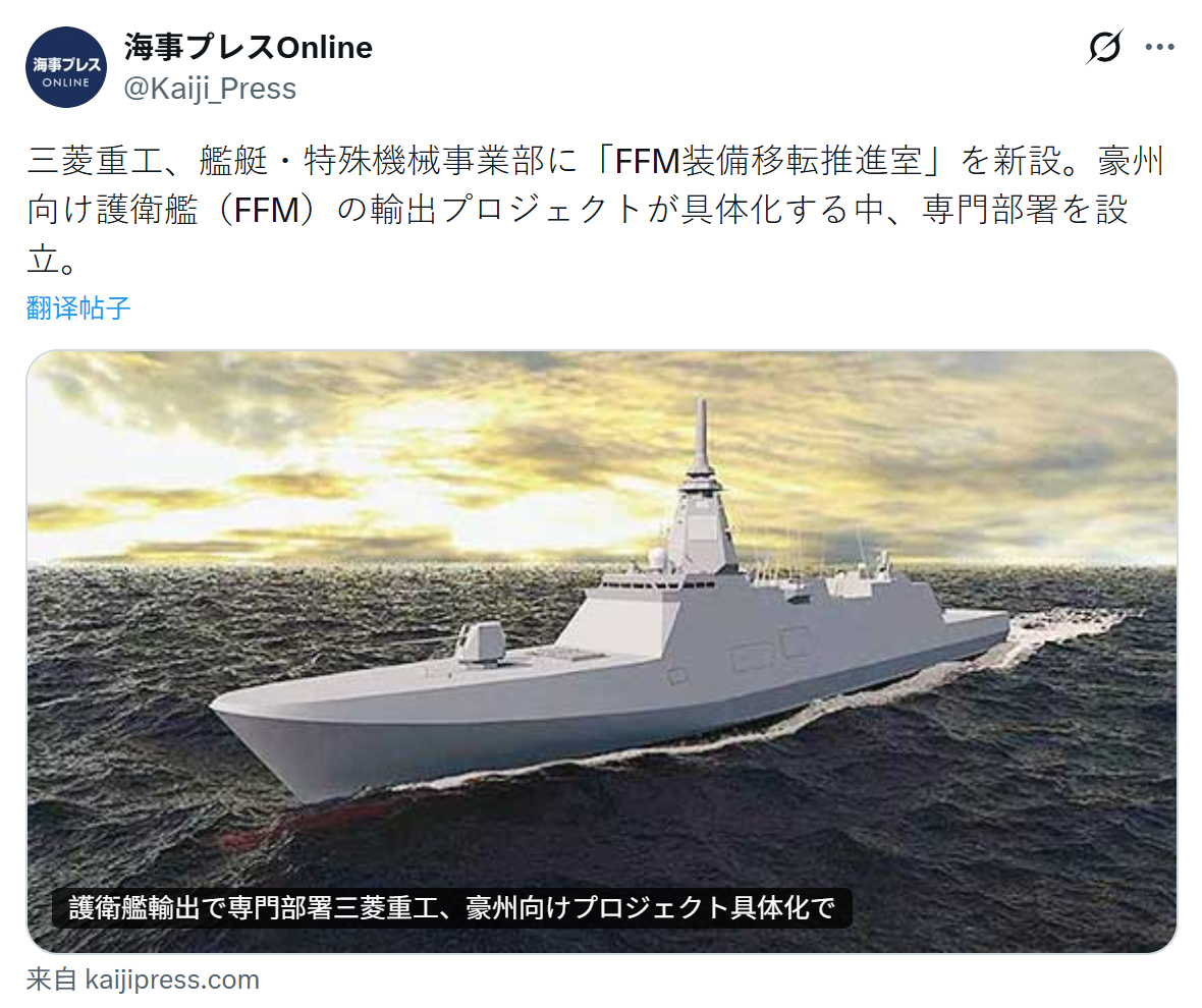 三菱重工将在2026年元旦成立“FFM装备转移推进室”
