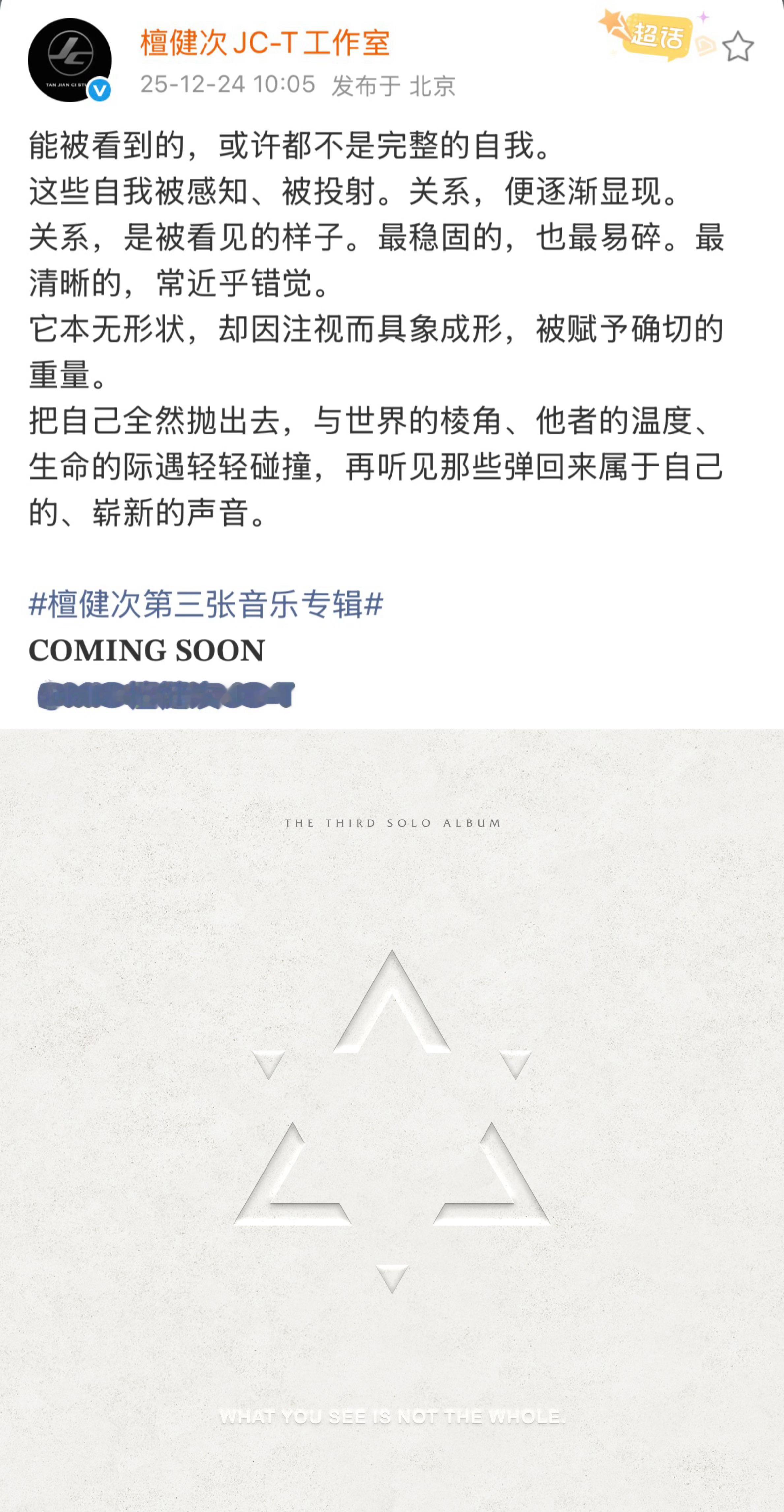 檀健次第三张音乐专辑预告檀健次第三张音乐专辑圣诞平安夜的惊喜!!!檀健次第三张音乐专辑即将来袭,燥候歌手檀健次的新歌新专辑
