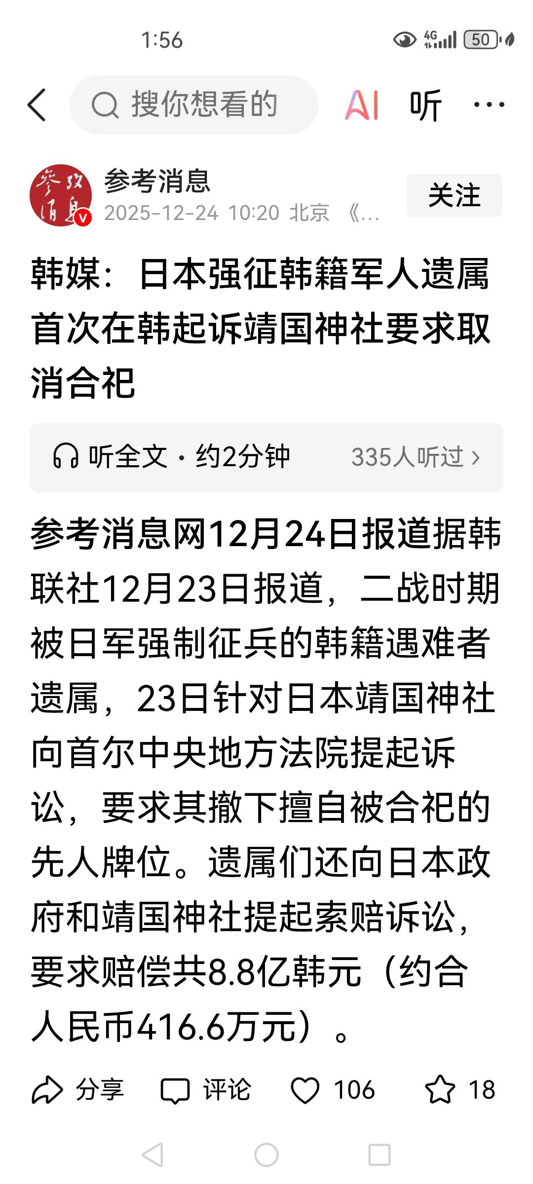 二战时期被征集的韩国军人,实际上就是韩奸,他们的遗属子女要求撤离靖国神社的合祭,这也说明韩国这部分人群在已经认识到,他们的先辈在二战时期也犯下了滔天罪行,不愿意与日本军国主义分子共用一个祭台,但事实上,这帮军人也参与过对中国的侵略,并且也犯下了滔天罪行,这个事情呢,我不知道做什么样的评价,我只是想说,与靖国神社的起诉,是他们遗属的问题,不参与合祭,这段历史也不可能抹去,起诉靖国神社是没问题的,但是这种起诉,总感觉到有点不对味儿,他们死后该由谁去祭祀呢?就是他们自己的亲属,放到靖国神社,不仅没有扬名,相反还是个耻辱。比如台独分子中的很多亲属,也有被供奉在靖国神社的,把他们撤出去?能说明什么问题呢?真正的遗臭万年。