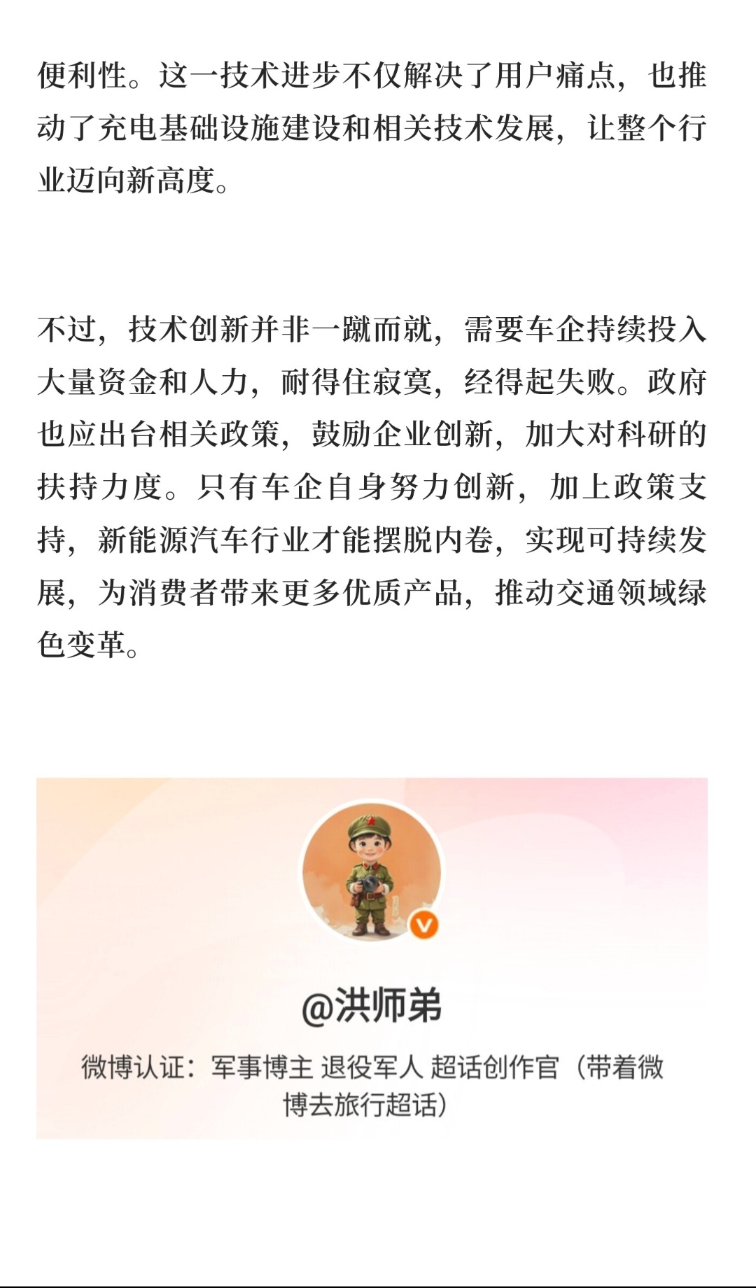 | 当下新能源汽车市场内卷严重,价格战此起彼伏,各车企在配置、续航等方面竞争激烈。要摆脱这一困境,技术创新是核心驱动力。不少车企为抢占市场份额,不断降低价格,可成本却难以同步下降,这导致企业盈利能力减弱,研发投入受限,长期来看不利于行业健康发展。而技术创新能开辟新赛道,避免同质化竞争。就像特斯拉,其率先在电池管理系统和自动驾驶技术上取得突破。独特的电池管理技术提升了电池效率和安全性,让车辆续航更有保障;先进的自动驾驶辅助功能,为用户带来全新驾驶体验。这些创新技术使特斯拉在市场中脱颖而出,即便价格相对较高,依然拥有大量忠实用户,摆脱了单纯价格竞争的内卷漩涡。技术创新还能提升产品附加值,增加企业利润。以比亚迪为例,其刀片电池技术是一大创举。刀片电池不仅能量密度高、安全性好,还降低了电池成本。搭载刀片电池的车型,在市场上凭借安全、长续航等优势,获得消费者认可,销量节节攀升。比亚迪凭借这一技术创新,提升了产品竞争力,在价格上也有了一定话语权,不再陷入低价恶性竞争,实现了利润增长。此外,技术创新能推动产业升级,带动整个新能源汽车行业发展。当一家车企在某项技术上取得突破,会引发行业关注和跟进,促使其他车企加大研发投入,形成良性竞争氛围。比如快充技术的创新,从最初充电慢、充电难,到如今部分车型实现高功率快充,大大缩短充电时间,提升了用户使用便利性。这一技术进步不仅解决了用户痛点,也推动了充电基础设施建设和相关技术发展,让整个行业迈向新高度。不过,技术创新并非一蹴而就,需要车企持续投入大量资金和人力,耐得住寂寞,经得起失败。政府也应出台相关政策,鼓励企业创新,加大对科研的扶持力度。只有车企自身努力创新,加上政策支持,新能源汽车行业才能摆脱内卷,实现可持续发展,为消费者带来更多优质产品,推动交通领域绿色变革。