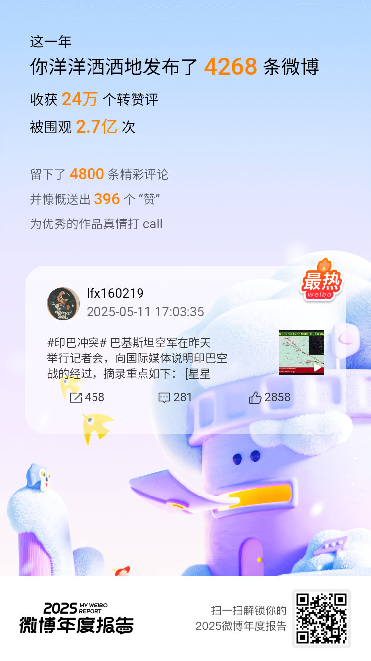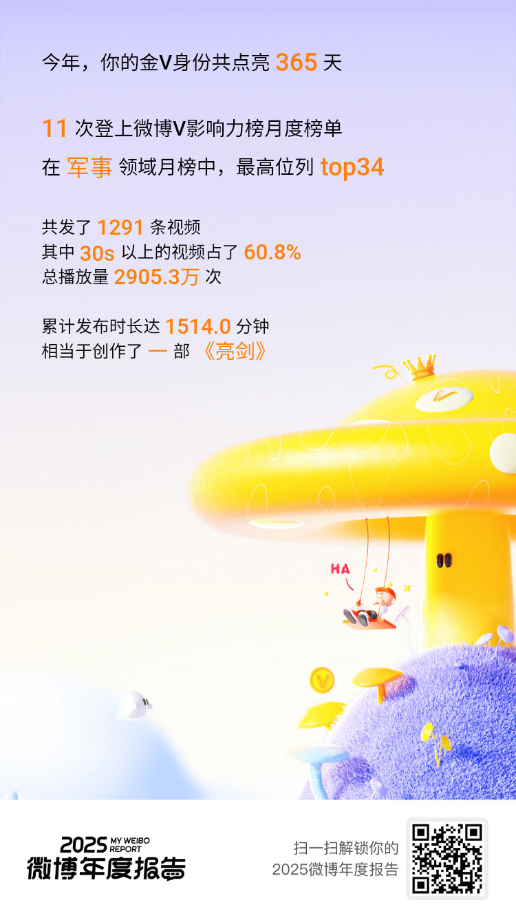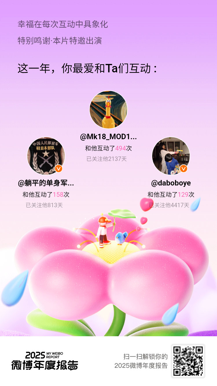 托你们的福,今年我保持金V成就365天!这份快乐也传递给你,速戳>>2025微博年度报告 ,解锁你的微博年度总结吧!微博年度报告微博之夜