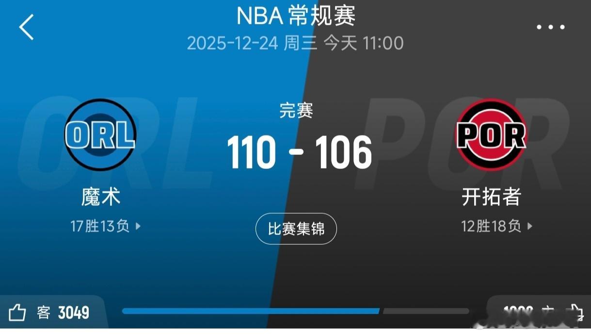 杨瀚森8分钟4分2板2助1断1帽 开拓者惜败魔术